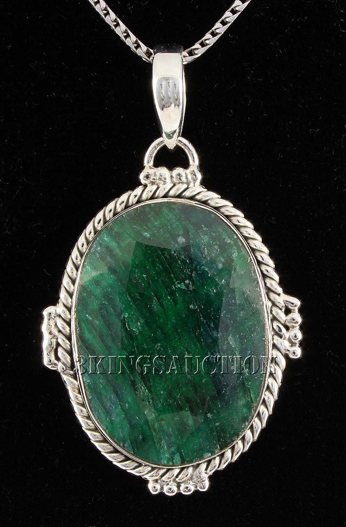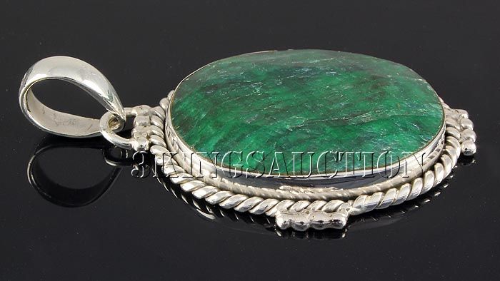 EMERALD BERYL 61.02CTW STERLING SILVER PENDANT **|**|** 30X22MM OVAL SHAPE EMERALD BERYL ANTIQUE DESIGN SILVER PENDANT ; MSRP: $700