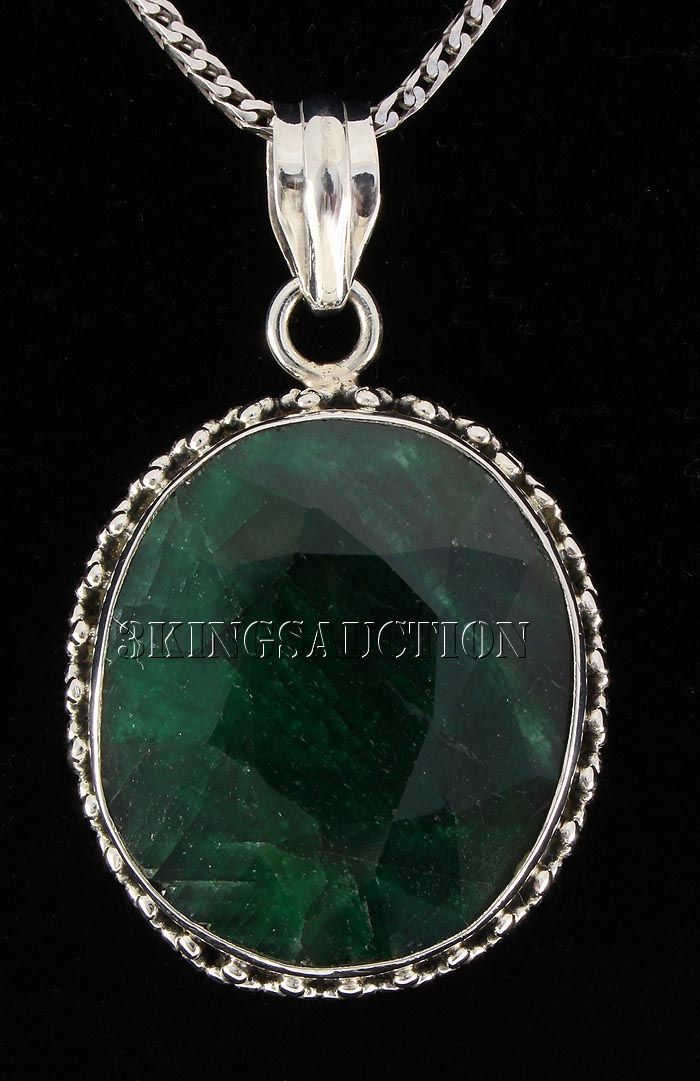 EMERALD BERYL 61.06CTW STERLING SILVER PENDANT **|**|** 26X23MM OVAL SHAPE EMERALD BERYL FLOWER DESIGN SILVER PENDANT ; MSRP: $700