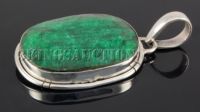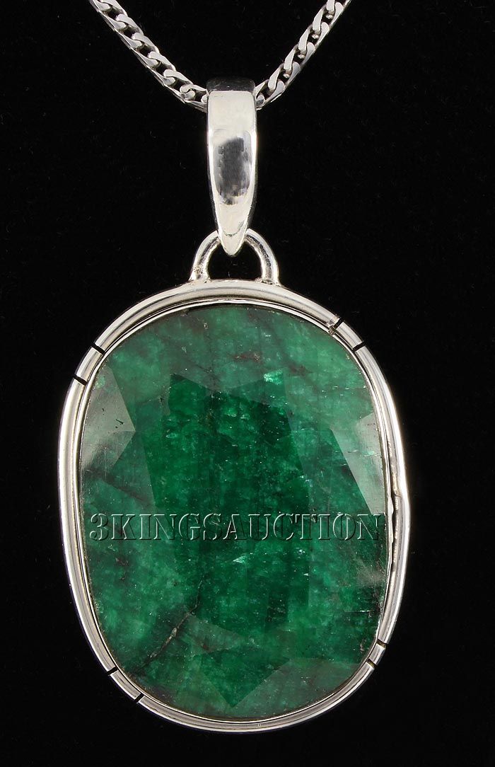 EMERALD BERYL 67.26CTW STERLING SILVER PENDANT **|**|** 29X21MM OVAL SHAPE EMERALD BERYL BEZEL TYPE SILVER PENDANT ; MSRP: $700