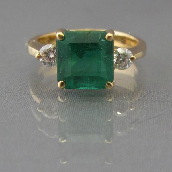 Emerald: Square Trap, 2.06ct (approx.), Clarity: Fair, Colour: Green with slight enhancement, 8.0mm x 7.7mm x 5.4mm
