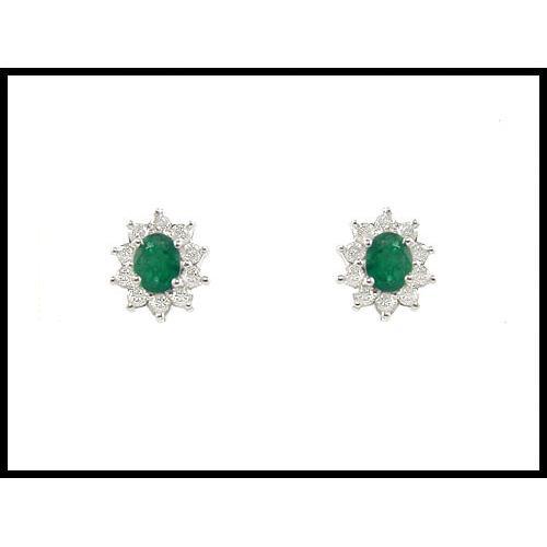 18K white gold earrings are set with pleasing natural (earth mined) emeralds borderd by 20 full cut diamonds (1/2 ct.). The earrings measure 8mm (5/16") wide x 9mm (5/16") long. Why pay $600.00????