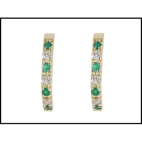 These outstanding quality 14K yellow gold emerald and diamond hoop earrings are in perfect condition. Almost 2/3 carats of natural emeralds and diamonds are a fine combination. They are 3mm (1/8") wide x 20mm (13/16") in length. Though elegant in appearance they are right for any occasion.
