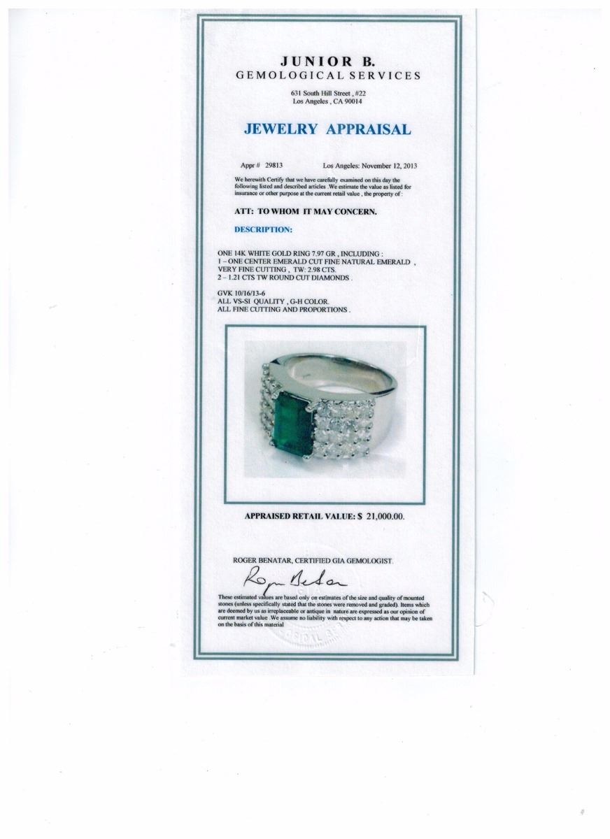 EMERALD E/C 1.98CT, 14K W/G RING 7.97GRAM / DIAMOND RD 1.21CT