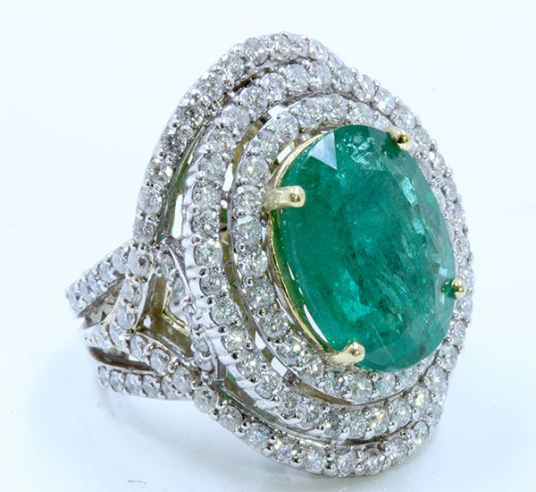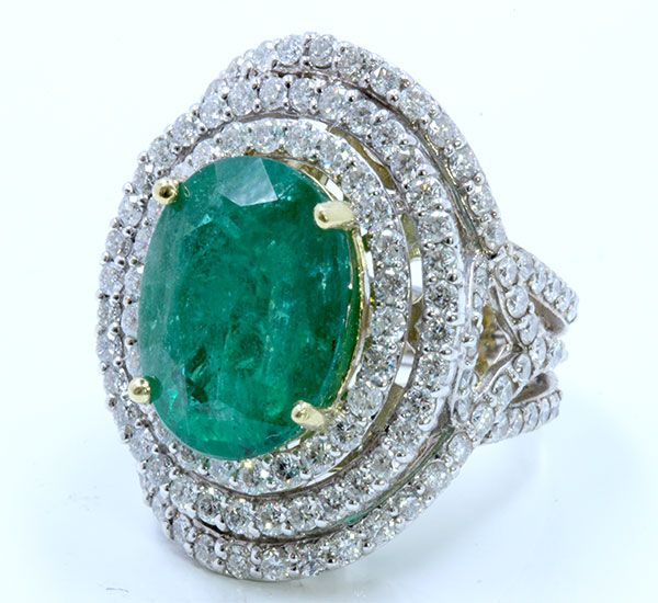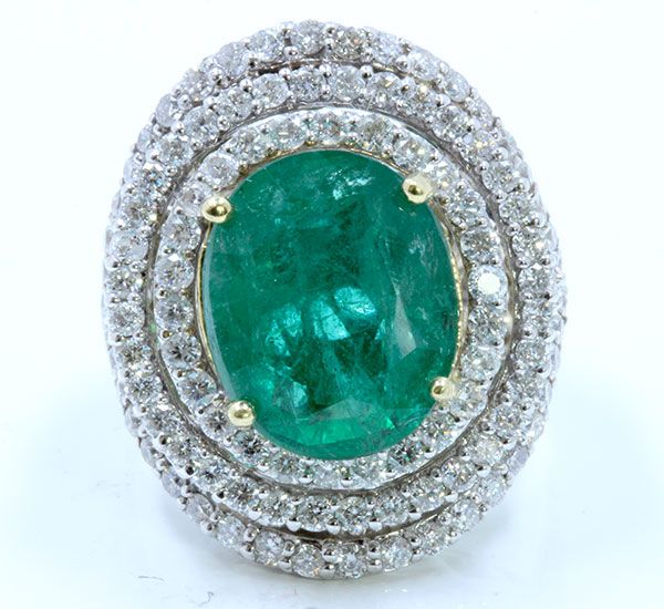 EMERALD OVAL 8.68CT, 14K W/Y/G RING 17.55GM / DIAMOND 3.68CT