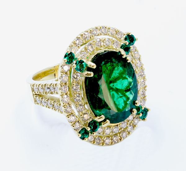 EMERALD SMALL 0.33CT / EMERALD 6.58CT, 18K Y/G RING 13.75GRAM / DIAMOND 1.33CT