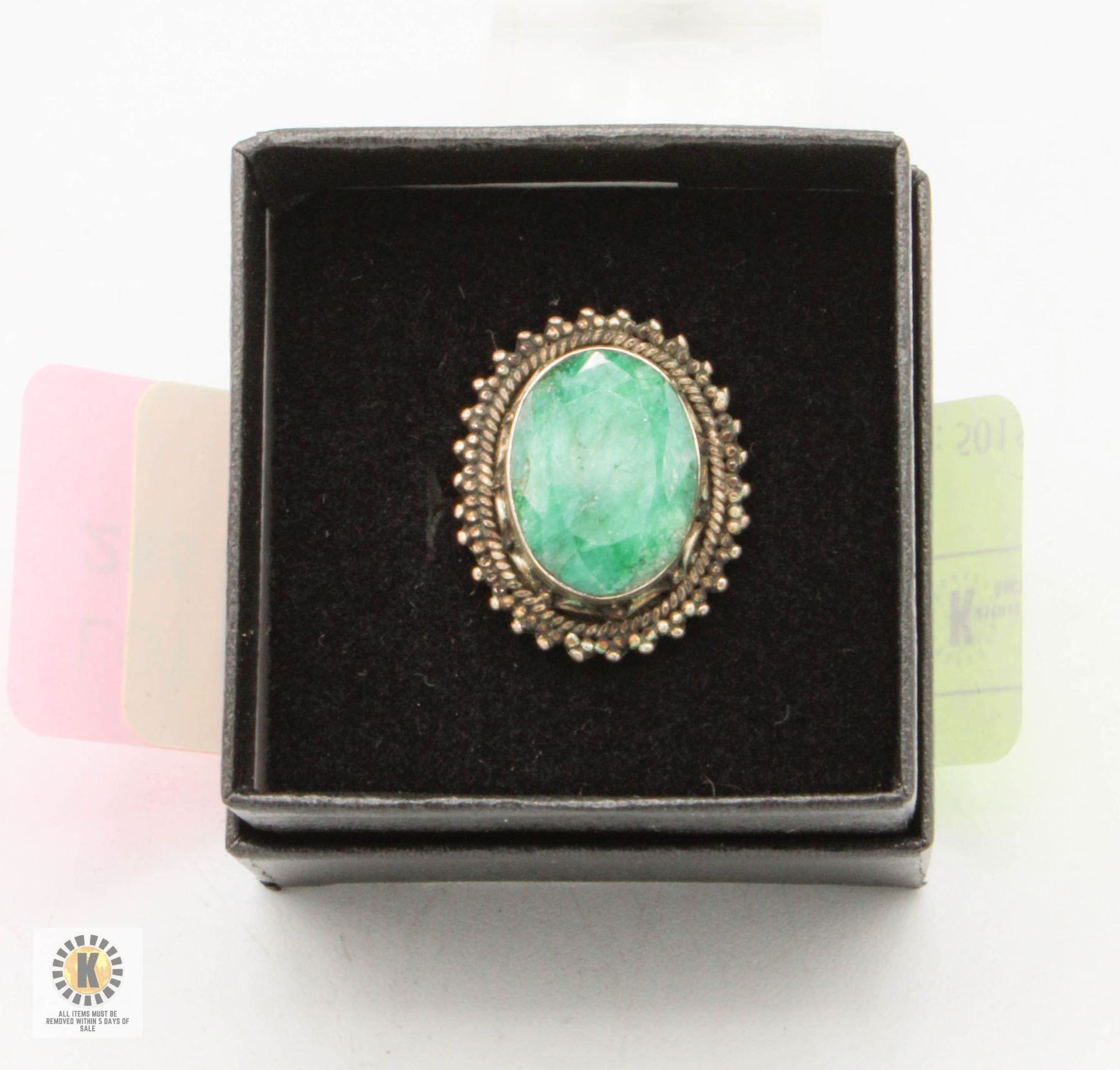 EMERALD STERLING SILVER GEMSTONE RING NEW SIZE 5