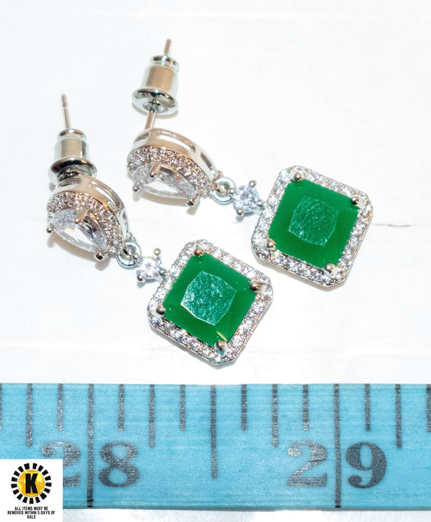 EMERALD TYPE CZ FASHION EARRINGS, NEW