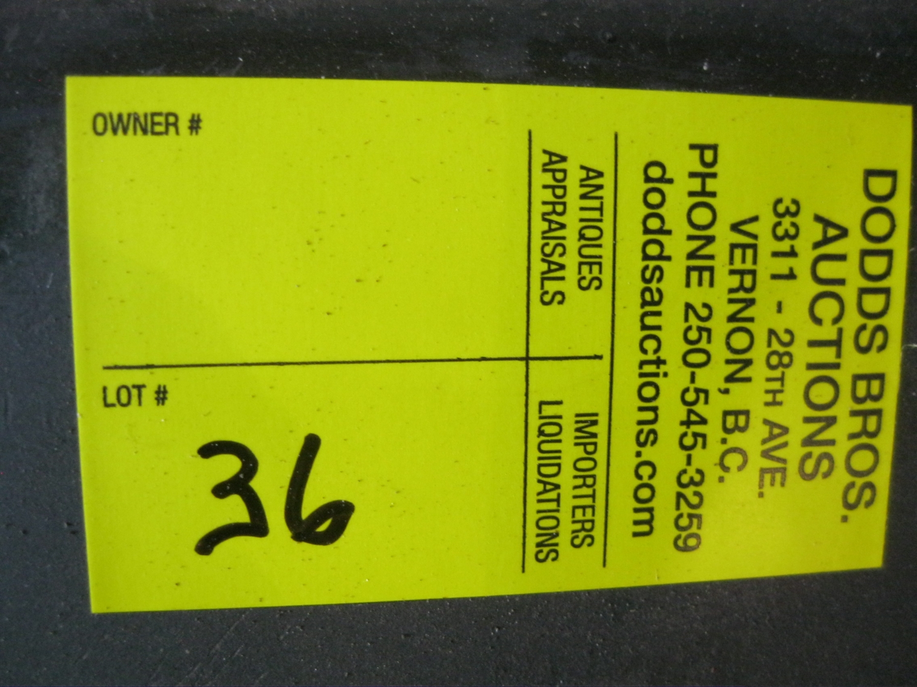 Attendance at the auction preview, or removal of purchased lots by purchaser/bidders and guests is done at their sole risk. Dodds Auction assumes no risk or liability, statutory, common law or otherwise whatsoever for the safety of those attending at the auction premises.