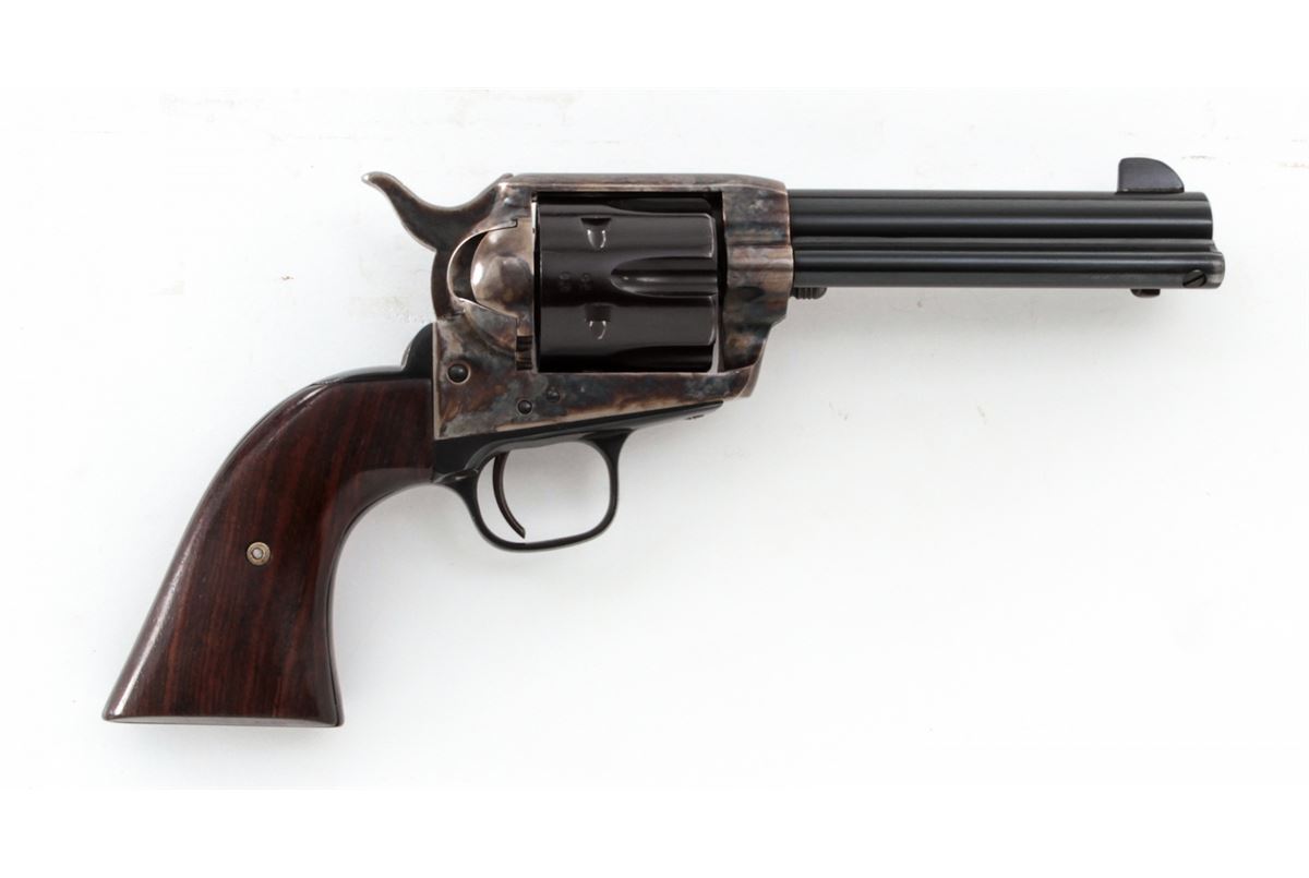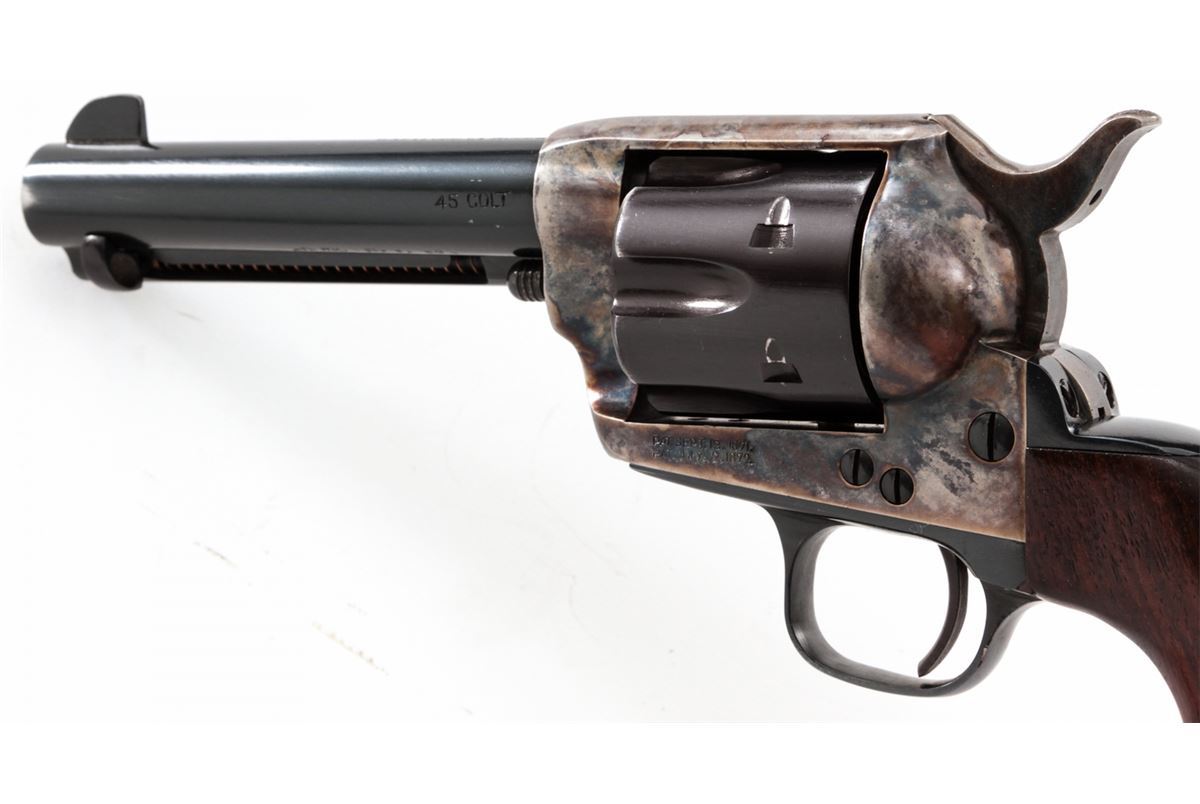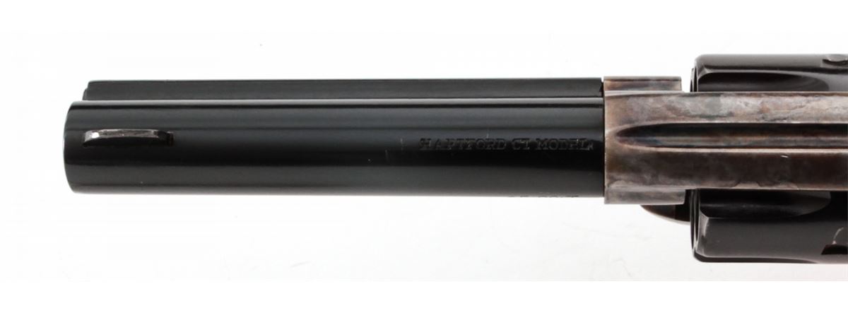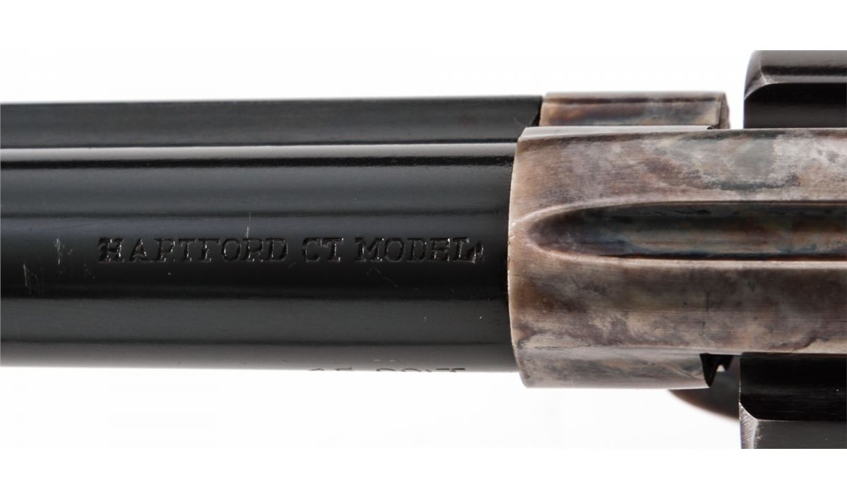 EMF Hartford Model Single Action Revolver, #SA17835, .45 Colt cal., 4-3/4'' barrel, blue and case hardened finish, hardwood grips. Condition is excellent showing just light marks from handling, with light wear at muzzle. (Consecutive to above lot.) Est.: $400-$600. (C&R/PPT)
