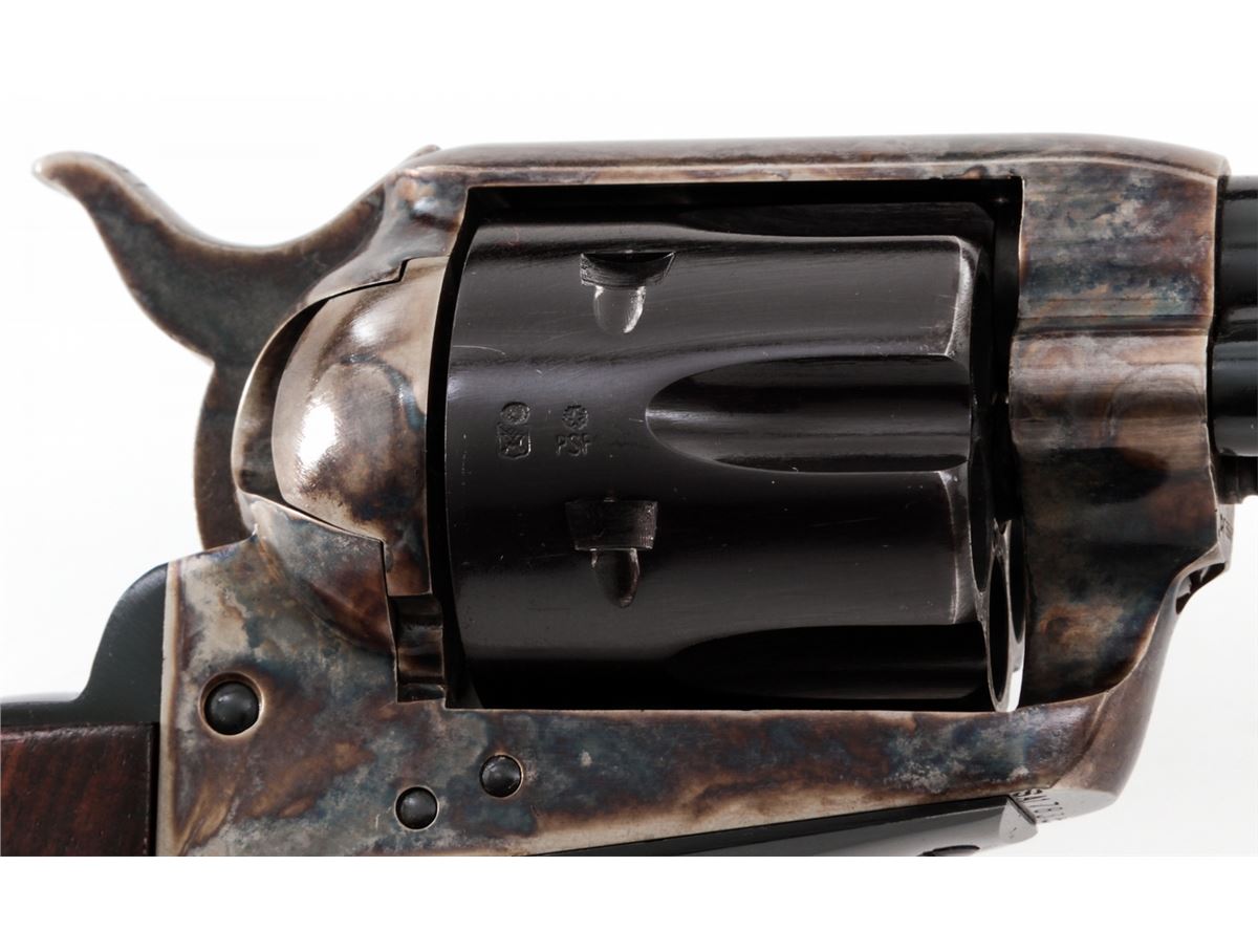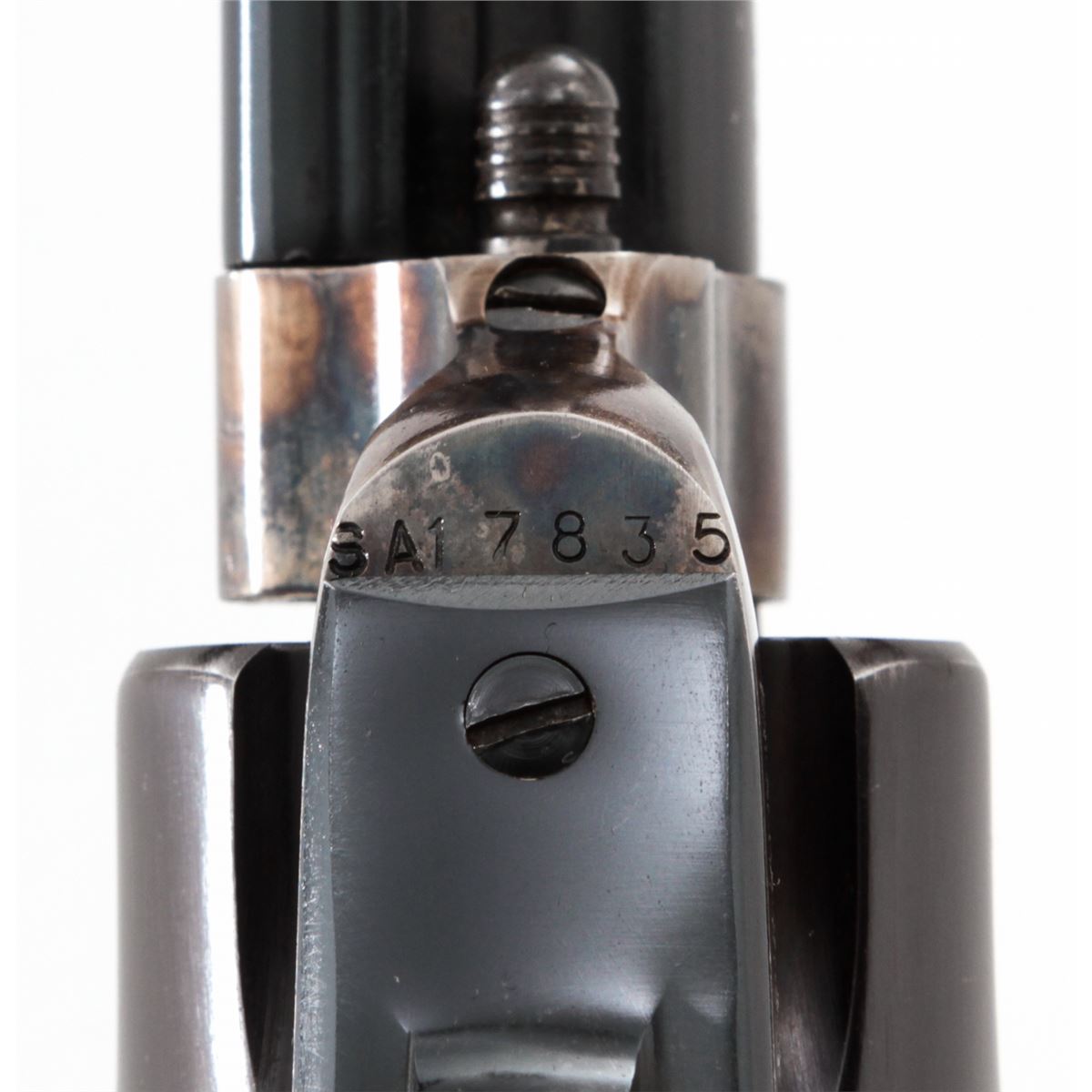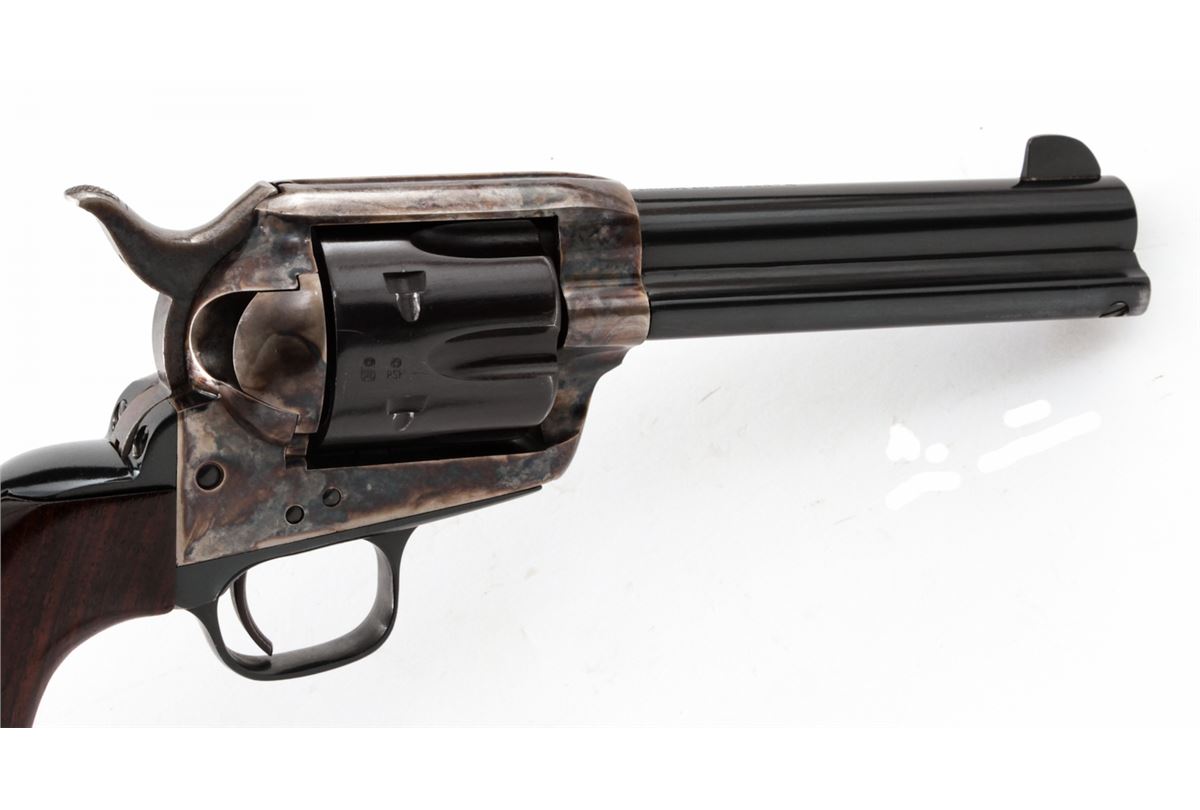 EMF Hartford Model Single Action Revolver, #SA17835, .45 Colt cal., 4-3/4'' barrel, blue and case hardened finish, hardwood grips. Condition is excellent showing just light marks from handling, with light wear at muzzle. (Consecutive to above lot.) Est.: $400-$600. (C&R/PPT)