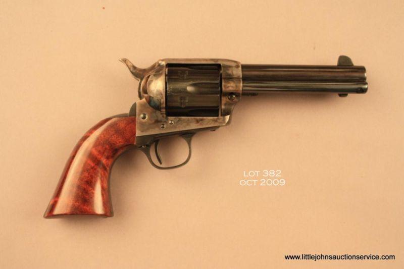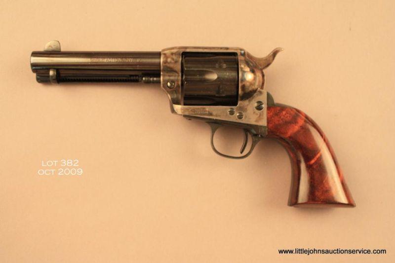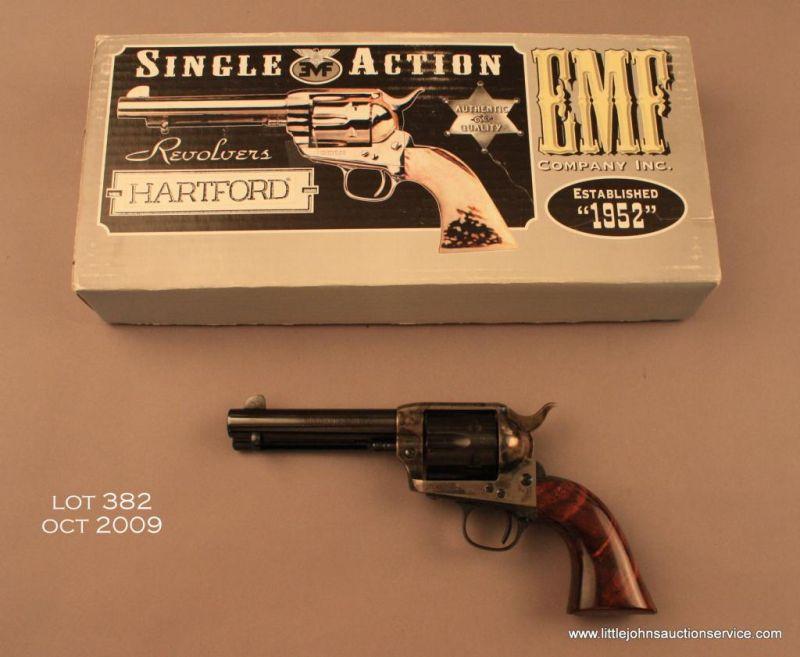 EMF SA revolver by Uberti, # J11596, .45 LC., 4.75" barrel, color case hardened receiver with blue barrel, smooth walnut grips. Revolver is in excellent condition overall, in it's original box, and appears unfired. Est. $150-$300.