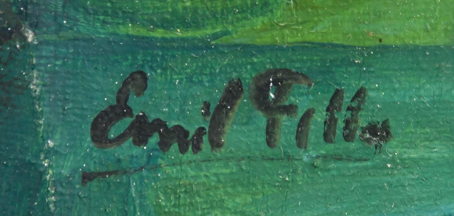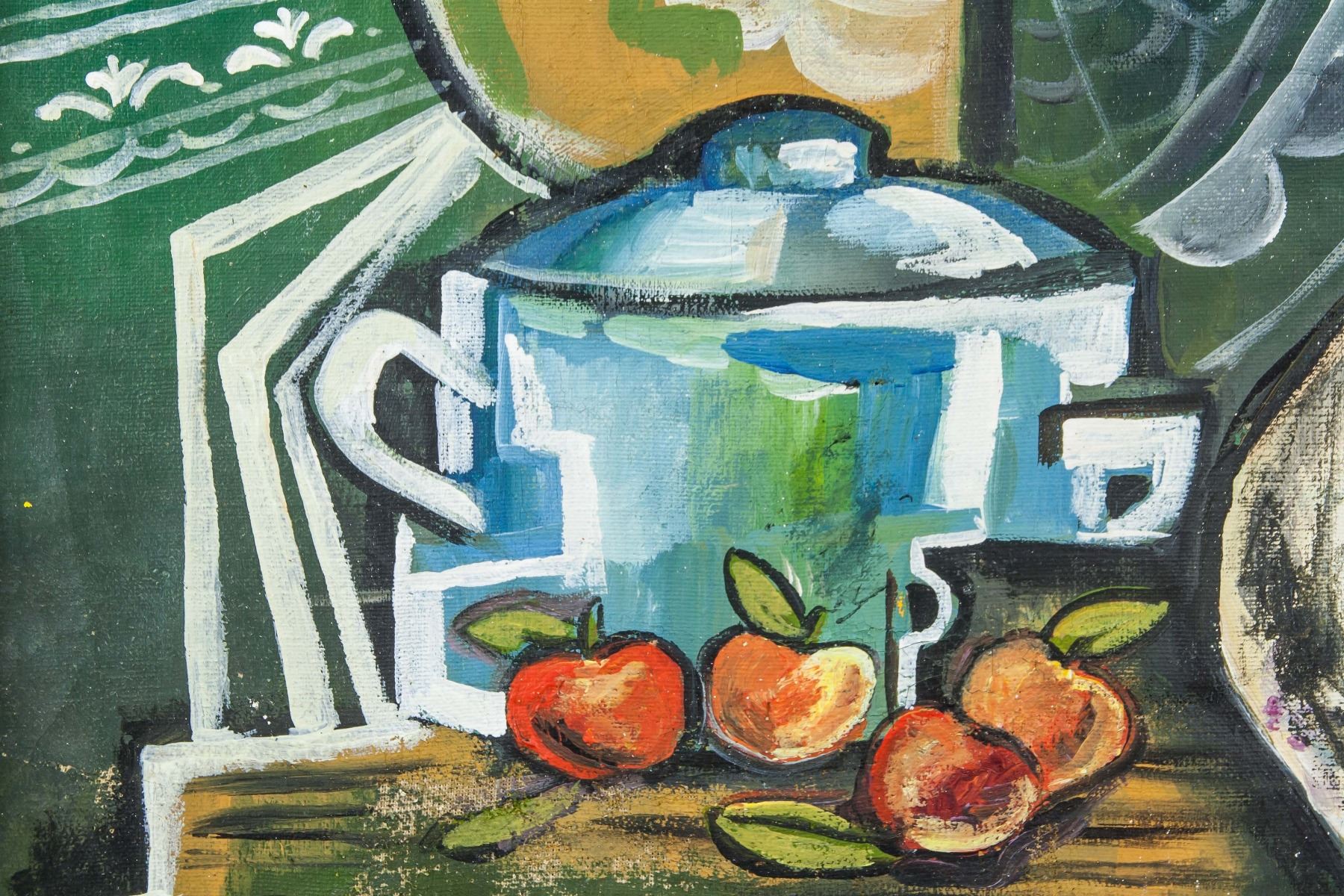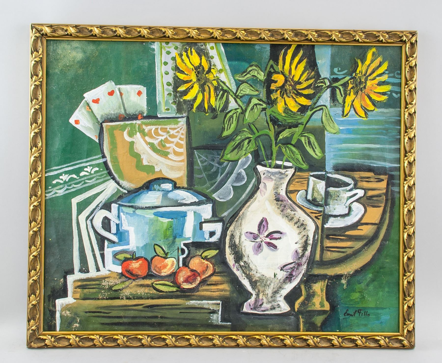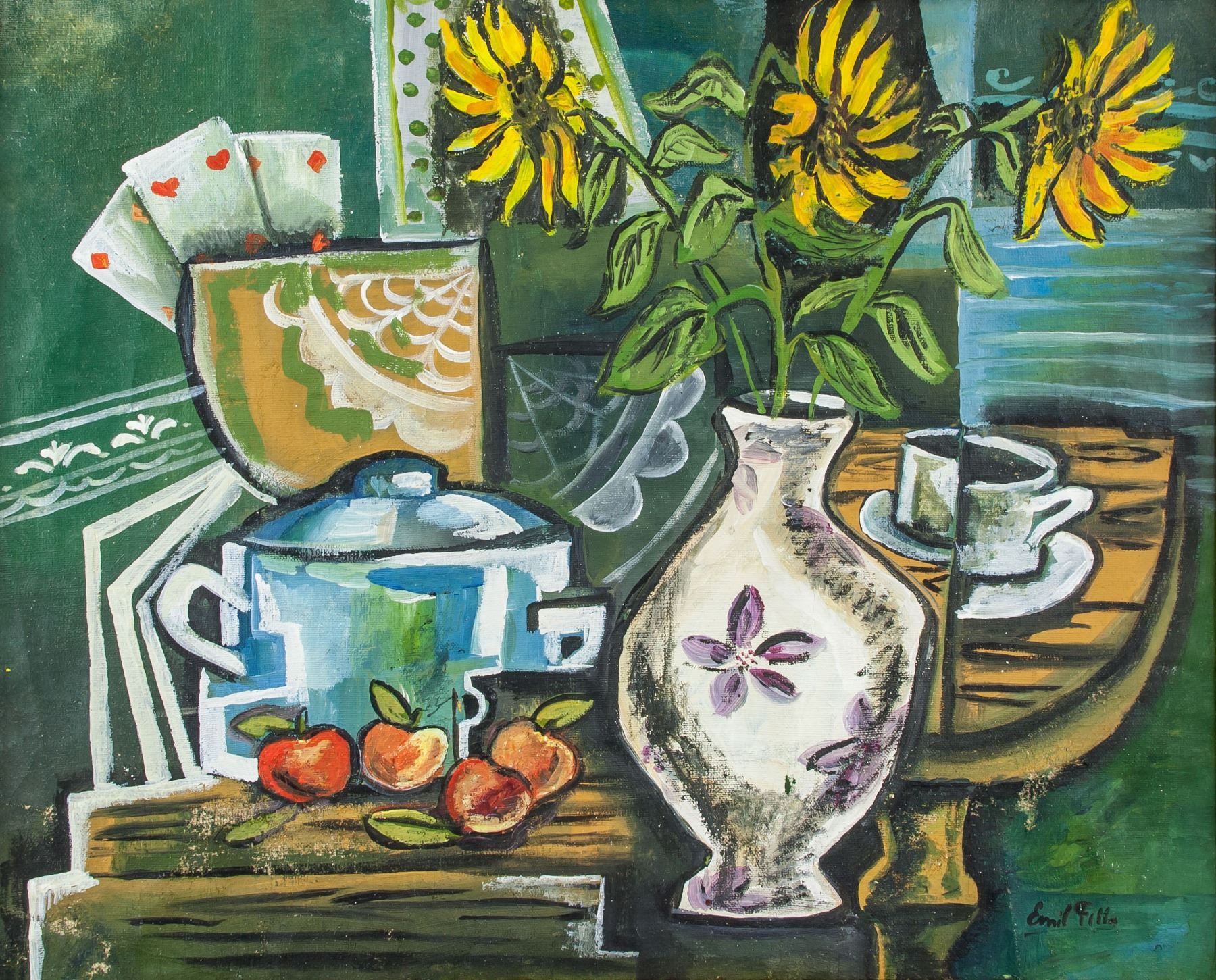 Oil on canvas, framed. Featuring a cubist still life. Signed and attr. Emil Filla (Czech, 1882-1953) on the lower right corner. 47.5 x 58 cm (18.7 x 22.8 inches). Emil Filla was a Czech painter whose works melded aspects of Cubism and Fauvism in his still lifes, landscapes, and figurative works. Born on April 4, 1882 in Chropyne, Moravia (present-day Czech Republic), he went on to attend the Academy of Fine Arts in Prague between 1903 and 1906. From there, he joined Osma, a Czech group with ties to the German Expressionists. Filla was living in Paris before World War I, where he adopted the Cubist style of Pablo Picasso and Georges Braque. During the 1920s, he continued painting in a style which utilized multiple perspectives and stylizations of form. At the onset of the World War II, Filla was imprisoned by the Gestapo and sent to the concentration camps Dachau and Buchenwald. Surviving the camps, he returned to Prague, where his work took on a subdued and traditional quality, and often focused on scenic landscapes. The artist died on October 7, 1953 in Prague, Czech Republic. Today, his works are held in the collections of the Olomouc Museum of Art in the Czech Republic, the Metropolitan Museum of Art in New York, and Museum Kampa in Prague, among others. PROVENANCE: Southern Ontario estate