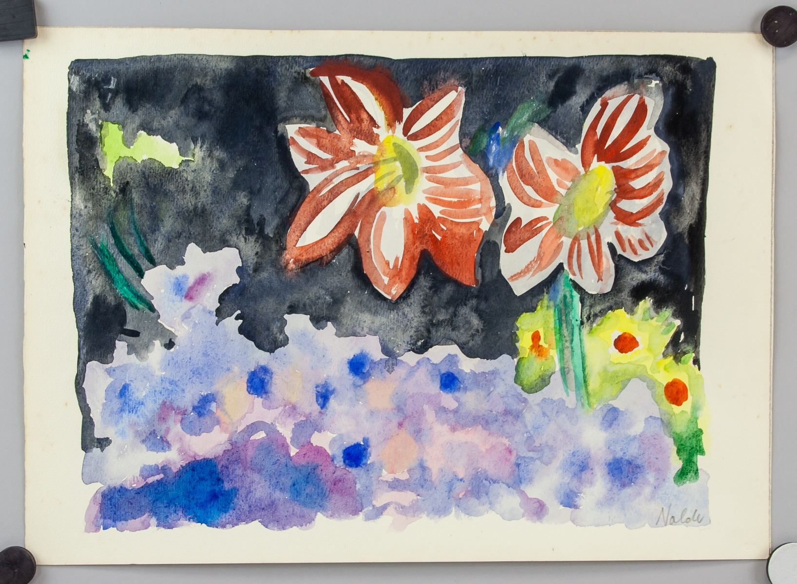 Watercolor on paper. Featuring still of flowers. Signed and attr Emil Nolde (German, 1867-1956) on the lower right corner in pencil. 25 x 35 cm (9.8 x 13.8 inches). Emil Nolde was a German Expressionist known for his paintings and prints of flowers, landscapes, and folkloric iconography. The roughhewn yet perceptual quality of his colors and mark-making bear the influence of Vincent van Gogh, as seen in his work Stormy Sea (1930). “There is silver blue, sky blue, and thunder blue. Every color holds within it a soul, which makes me happy or repels me, and which acts as a stimulus,” the artist mused. Born Emil Hansen on August 7, 1867 in Nolde, Denmark (formerly Germany), he was raised in a family of farmers in a rural area by the sea. Expected to join the family farm Nolde instead pursued a career in furniture carving before beginning to paint. In 1906, while in Berlin he briefly joined the Die Brücke Expressionist group, which included his friend and advocate Karl Schmidt-Rottluff. He would go on to exhibit with both the Berlin Secession and Wassily Kandinsky’s Der Blaue Reiter group. During World War II, the Nazi regime, of which Nolde was an outspoken supporter, categorized him as a “degenerate” artist, though he continued to paint through the war unfazed. The artist died on April 15, 1956 in Seebüll, Germany at the age of 88. His works are presently held in the collections of the Art Institute of Chicago, The Museum of Modern Art in New York, the Kunstmuseum Basel, the Los Angeles County Museum of Art, and the Albertina in Vienna. PROVENANCE: Private estate (Perugia, Italy)