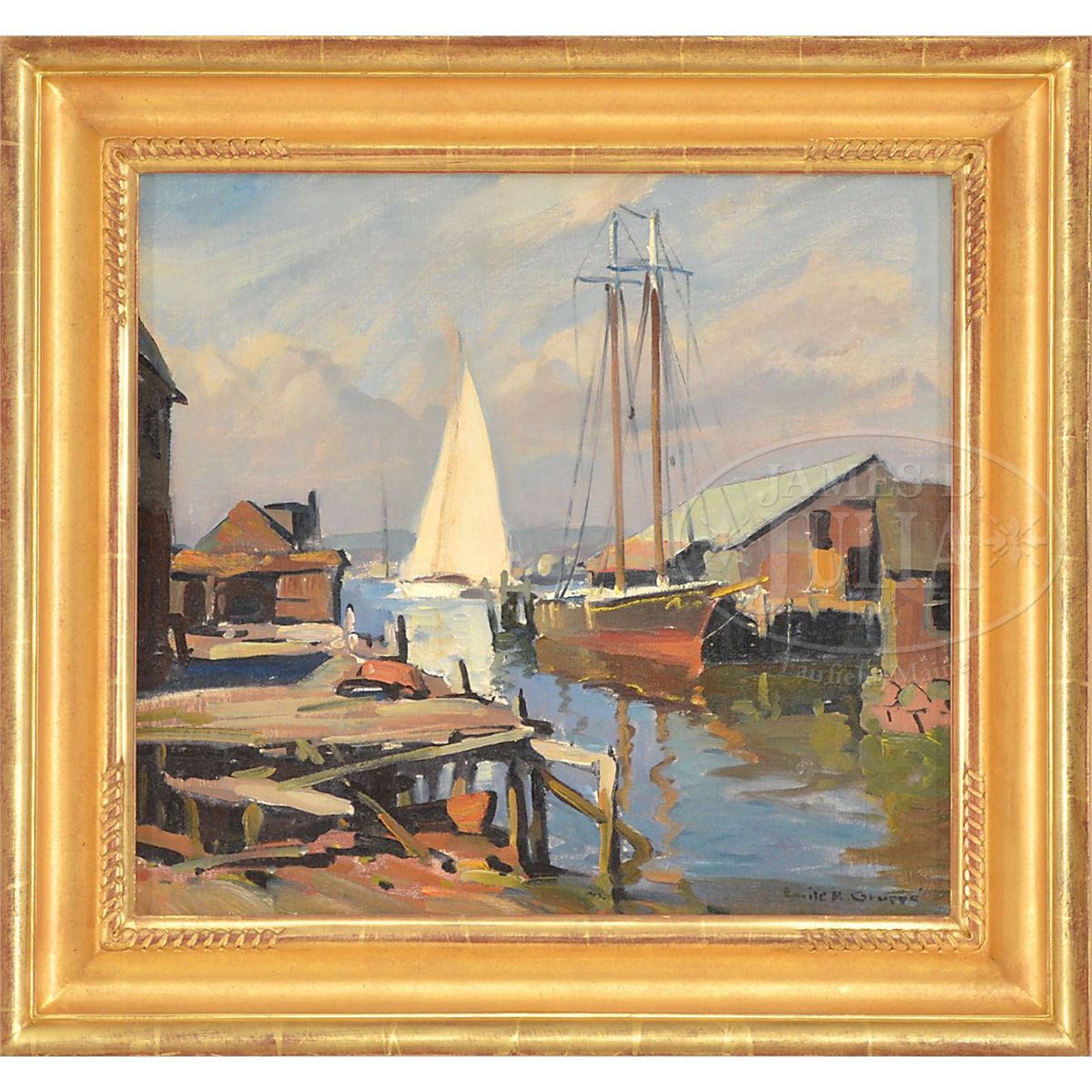 Oil on canvas Housed in a fine gold wood modern frame Signed lower right "Emile A. Gruppe" SIZE: 18" x 20". Overall: 24-1/4" x 26-1/4". CONDITION: Very good. 9-29488