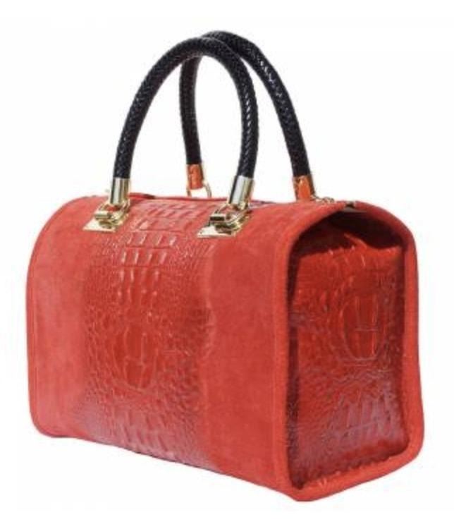 Boston-style made of genuine calfskin and handcrafted in Florence, Italy. It is designed with golden metal hardware and braided leather handles. It has an adjustable and removable shoulder strap. Very elegant and classy, this bag features in its 2 sides a mock croc detailing and suede middle surface. It is suitable for office and evenings. It is a gorgeous timeless bag with an inside small zippered pocket and a pocket for cell phone or keys. This modern design can be worn whether as a handbag or as a comfortable cross body bag. Check its wonderful colors, you will find one to match your beautiful clothes! DETAILED FEATURES Length:30 cm 11.8 in Width:15 cm 5.9 in Height:22 cm 8.7 in Shoulder belt:120 cm 47.2 in Handle:38 cm 15 in Closure Type:Zipper Metallic pieces :golden color Weight:0,80 kg 1.76 lb Color: Tan - 9409-022318-EB-59581