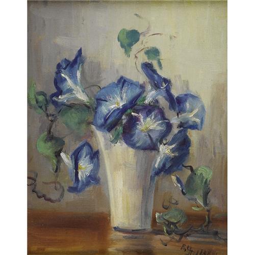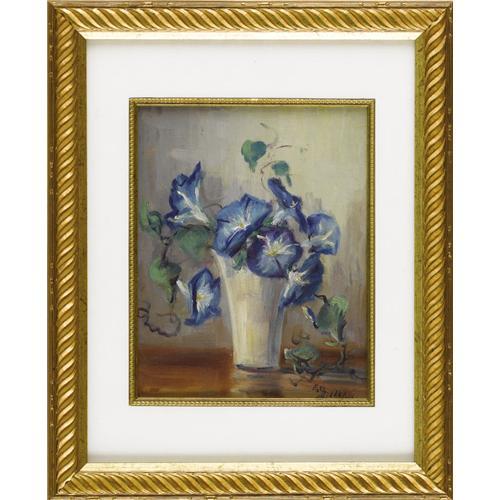 <B>EMMA DILLARD (1879-1968)</B></I><BR><I>Morning Glories</B></I><BR>Oil on canvasboard<BR>9 1/2in. x 7 1/4in.<BR>Signed lower right<BR><BR> <B>Condition Report:</B> Excellent condition with minor scattered inpainting. New framed in excellent condition.<BR><BR><b>Shipping:</b> Requires 3rd Party Shipping (<a target="_blank" href="http://www.heritageauctions.com/common/shipping.php">view shipping information</a>) <BR><BR><B>Important notice:</