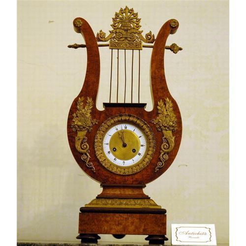 Rare antique circa 1800 I° EMPIRE "CARLO X king of France (1824-1830)" BRONZE AND MAPLE CLOCK ".The clock is a key wound 8 day that chimes on the hour and half hour. With a Roman dial in a good condition. The early clockwork with pendulum has a hanging silk thread suspension,you can see the clock movement through its front glass cover. A fantastic French antique in original and lovely condition. Perfect the function of the mechanism!!!Very very rare................