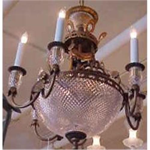 This is a lovely Empire Style cut glass chandelier with six arms.