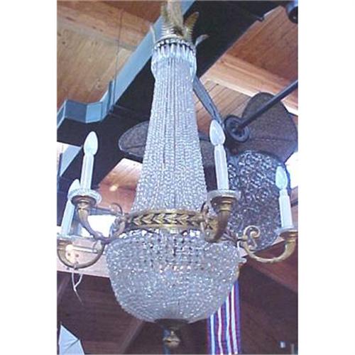 <tr><td>Title:EMPIRE DORE' BRONZE AND CRYSTAL CHANDELIER</td></tr>