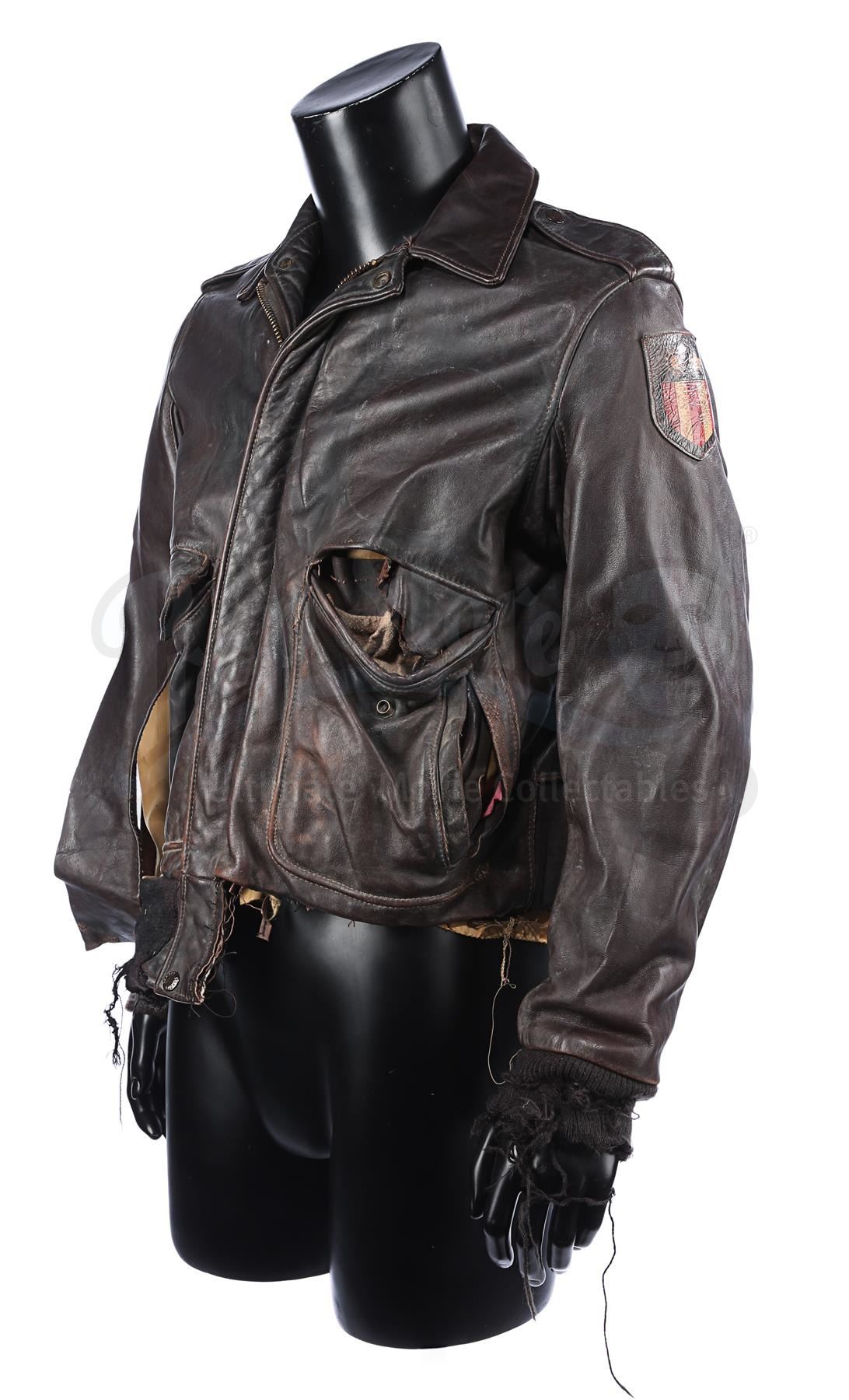 Jim's (Christian Bale) brown leather flying jacket from Steven Spielberg's Oscar-nominated Second World War epic Empire of the Sun. Jim wore his jacket throughout his time in the internment camp, with the distressing of the patch on the back a close match to that seen on his jacket near the end of the film during the camp's forced evacuation. Costume designer Bob Ringwood earned an Academy Award and BAFTA nomination for his contribution to the film.