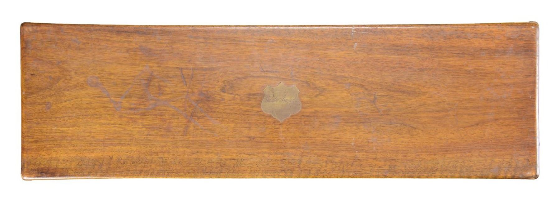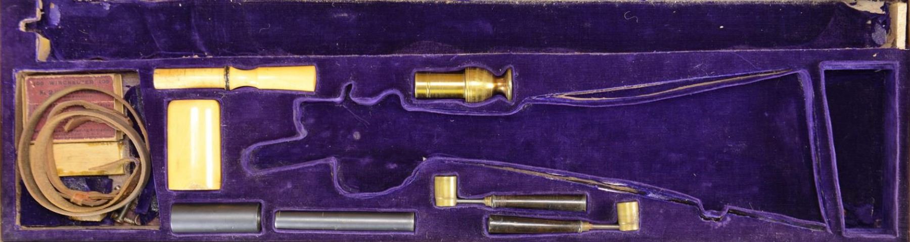 EMPTY ANTIQUE RIFLE CASE WITH SOME IMPLEMENTS.