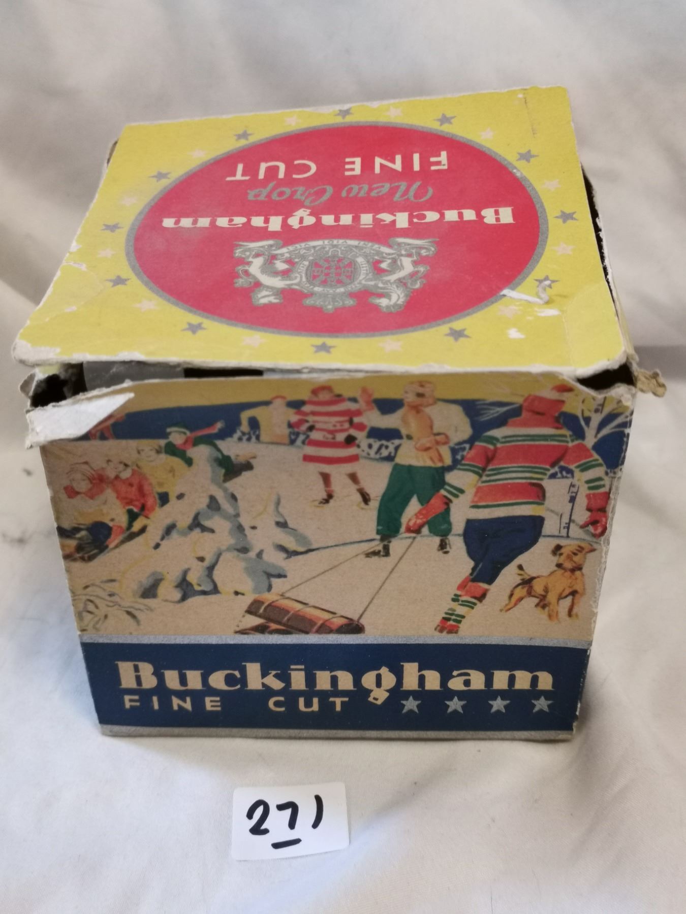 EMPTY CARDBOARD BUCKINGHAM TOBACCO CONTAINER