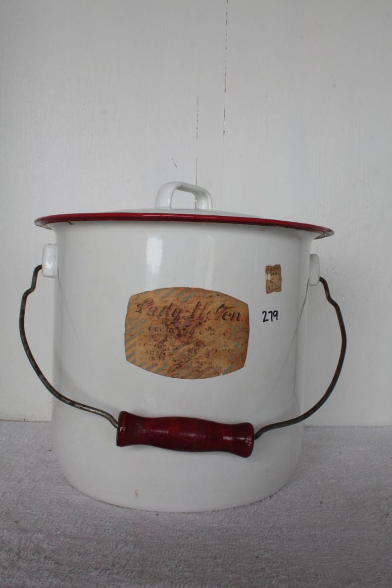 ENAMEL RED & WHITE CHAMBER POT (FULL OF CASTERS