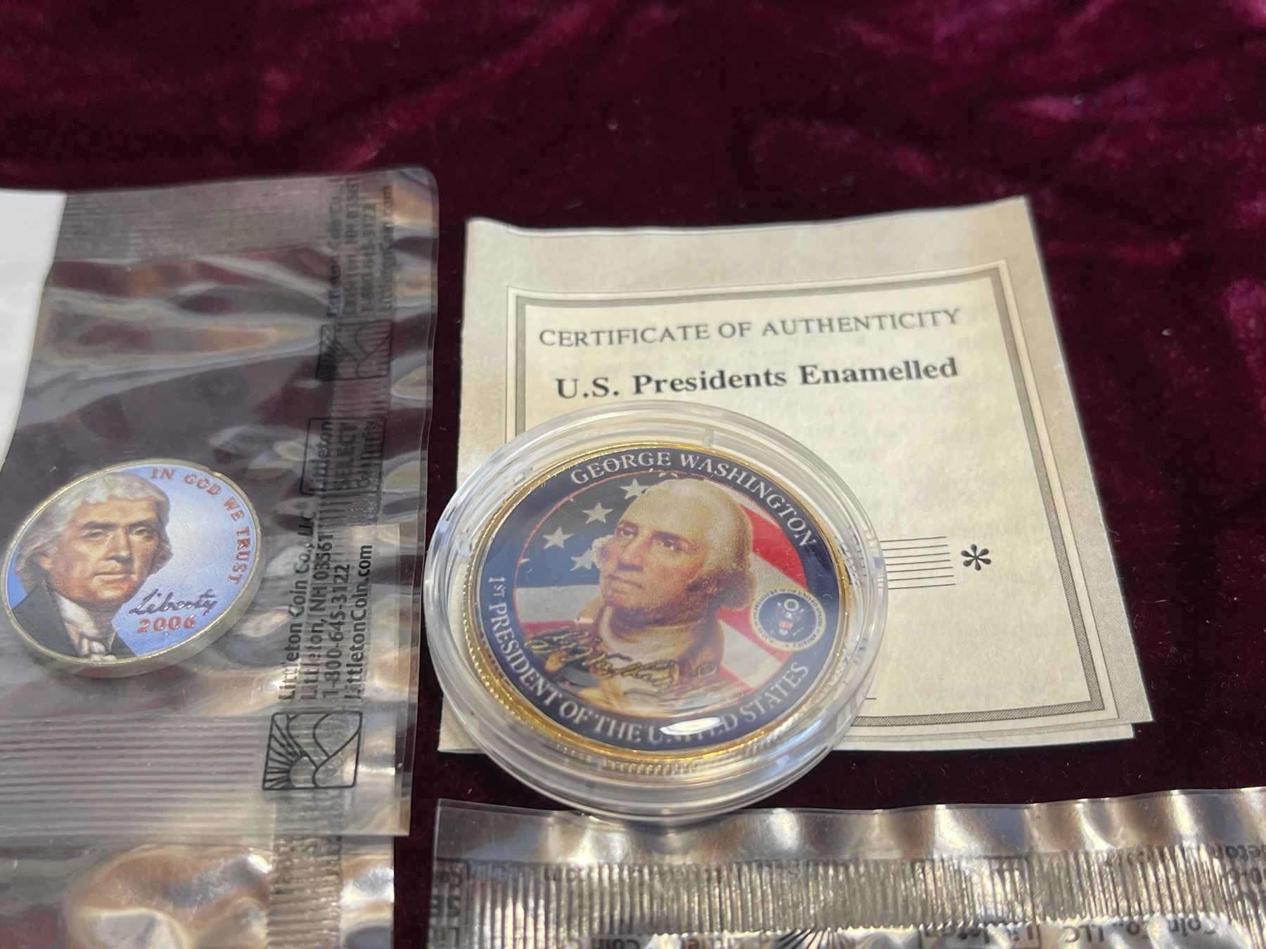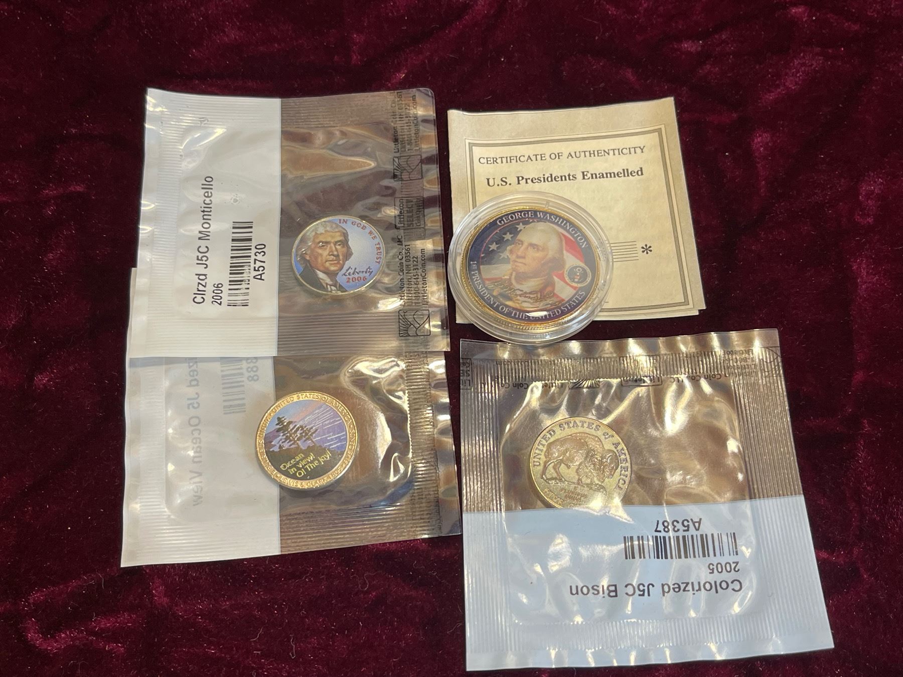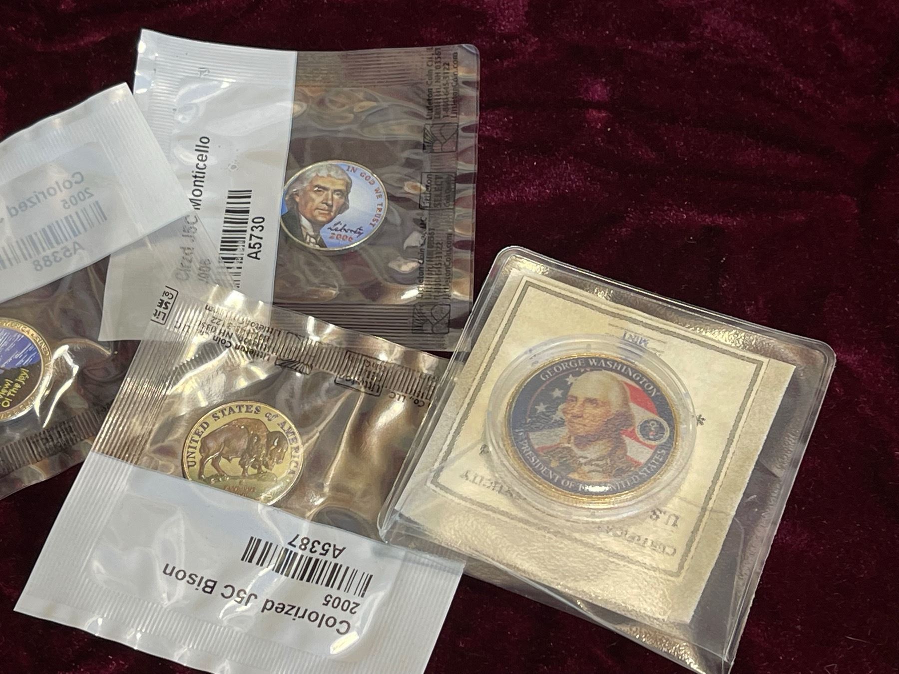 ENAMELED WASHINGTON HALF DOLLAR AND COLORIZED NICKELS
