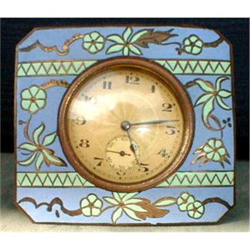 This is a very pretty enameled vanity, travel or desk clock. It is a spring-driven