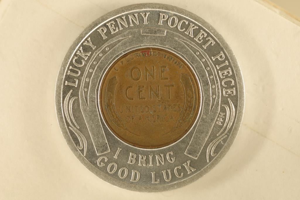 NUMISMATIC SOCIETY, LUCKY PENNY POCKET PIECE, I BRING GOOD LUCK.