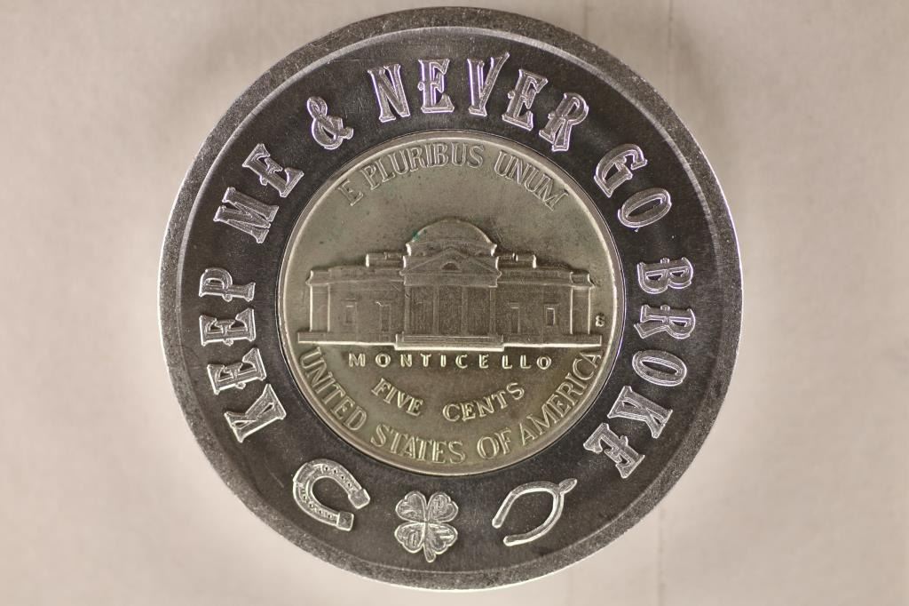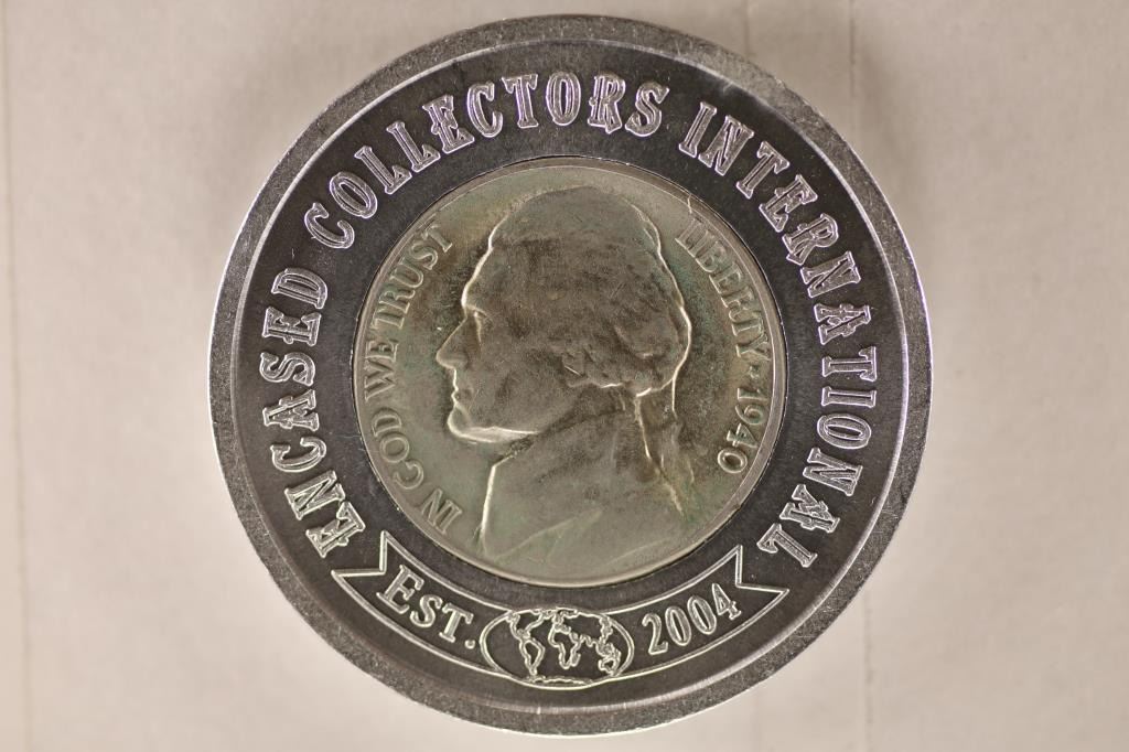 NEVER GO BROKE" ON REVERSE AND ENCASED COLLECTORS INTERNATIONAL ON OBV. EST. 2004