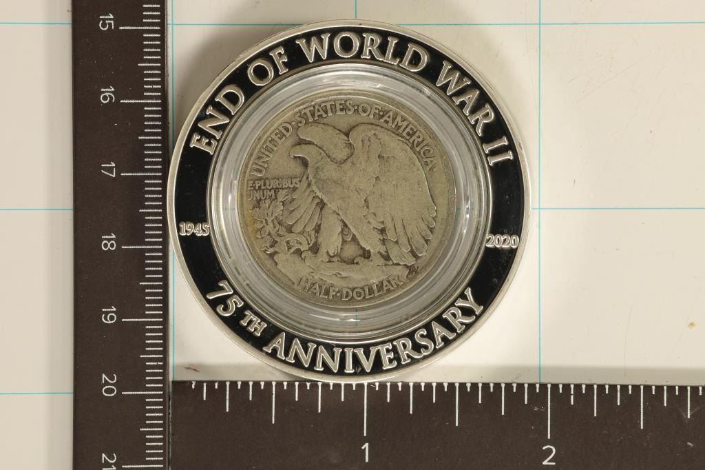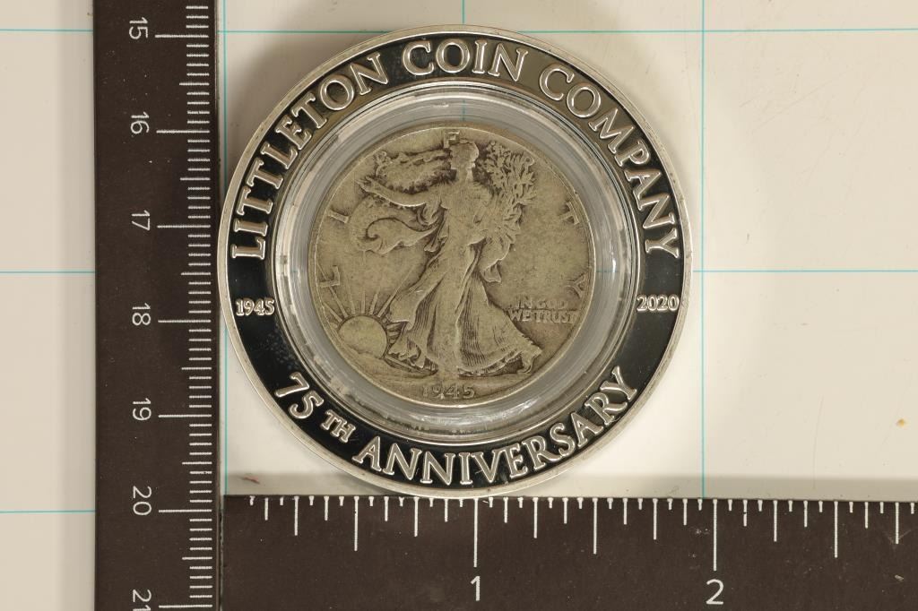 PLATED RING 46.4 GRAMS TOTAL, 2020 LITTLETON COIN COMPANY 75TH ANNIVERSARY. IN HARD PLASTIC CAPSULE
