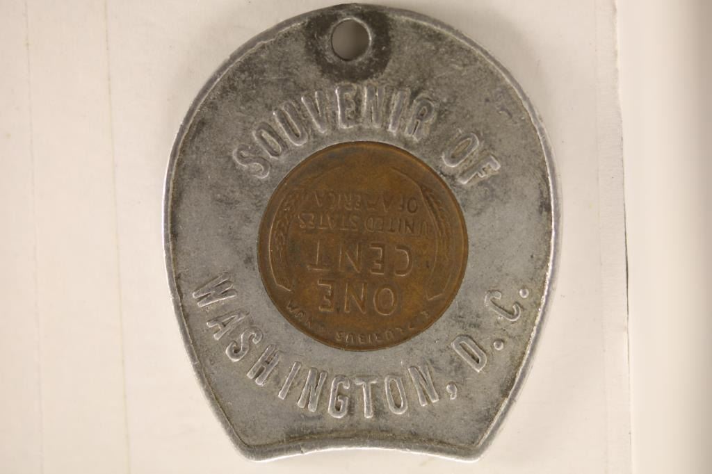 WITH HOLE. "KEEP ME AND NEVER GO BROKE" ON THE OBVERSE AND "SOUVENIR OF WASHINGTON D.C." ON THE REVERSE.