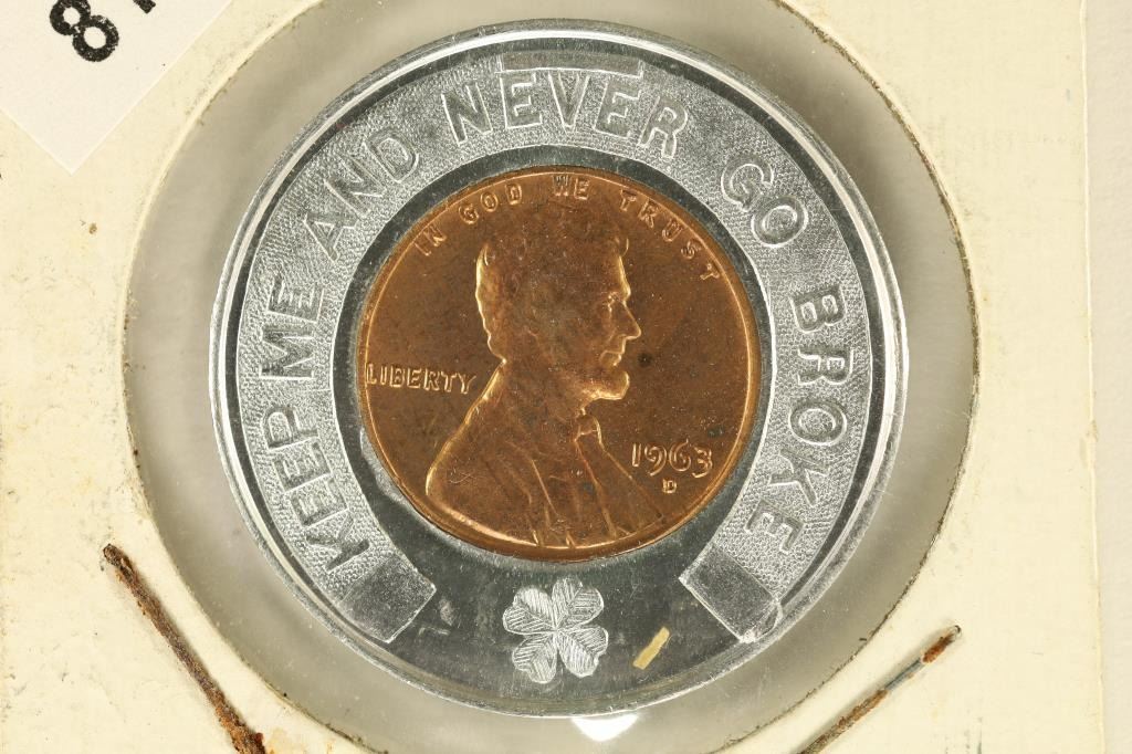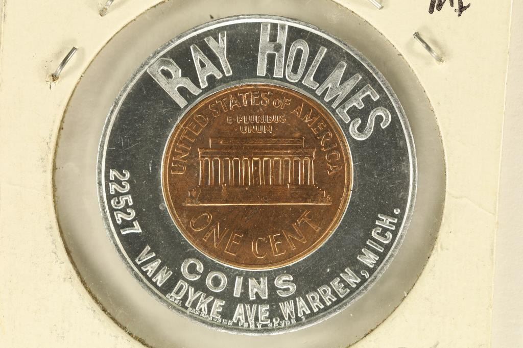 KEEP ME AND NEVER GO BROKE ON OBV. AND RAY HOLMES COINS WARREN, MICHIGAN ON THE REVERSE