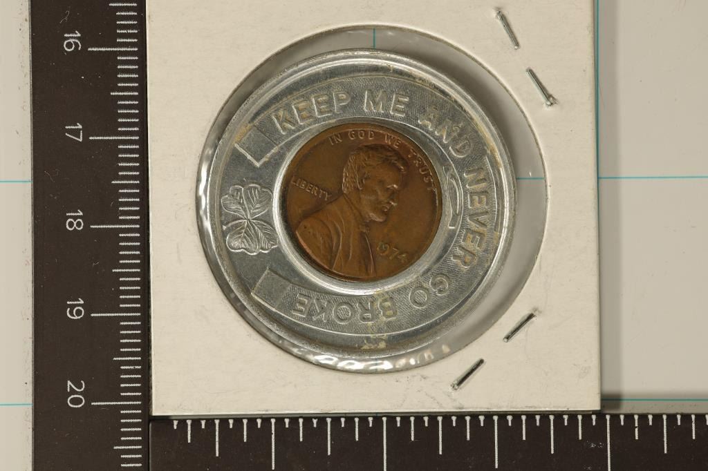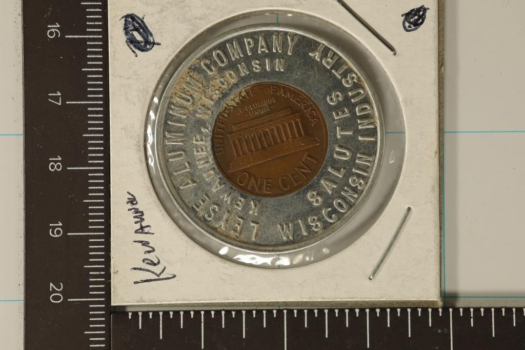 BROKE" ON THE OBVERSE AND "LEYSE ALUMINUM COMPANY, KEWAUNEE, WI" ON THE REVERSE