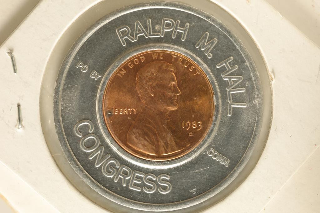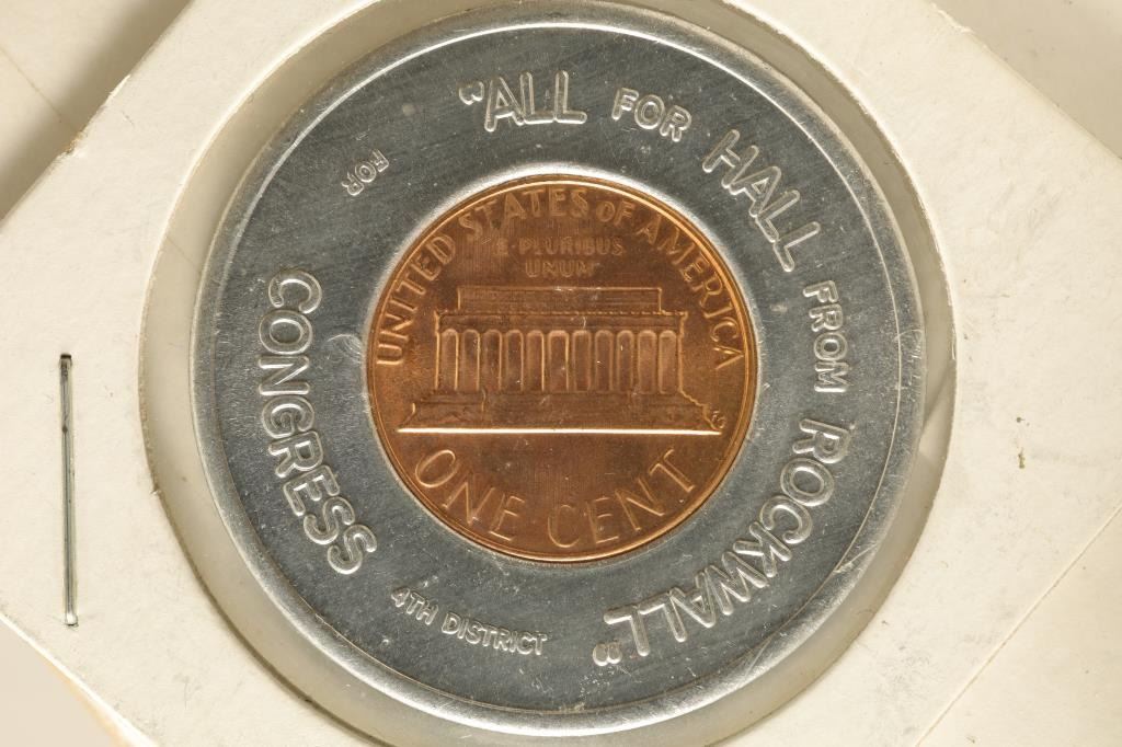 CONGRESS" ON THE OBVERSE AND "ALL FOR HALL FROM ROCKWALL" ON THE REVERSE. BRILLIANT UNC