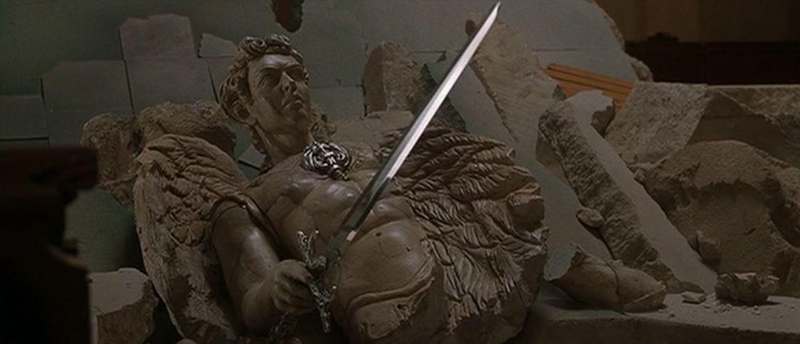 End of Days (1999) - End of Days (1999) Screen used broken statue of Angel Michael. This statue is knocked over in the finale of the film and Jericho impales himself on it. 9 pieces total. Torso Pieces together are 42"x15"x14", Wing is 48" x 17" x 13", Arms are 25" and 27". Two Torsos with Head 54" Tall. This item is oversized and will require additional shipping charges. Please email for shipping rates prior to bidding.