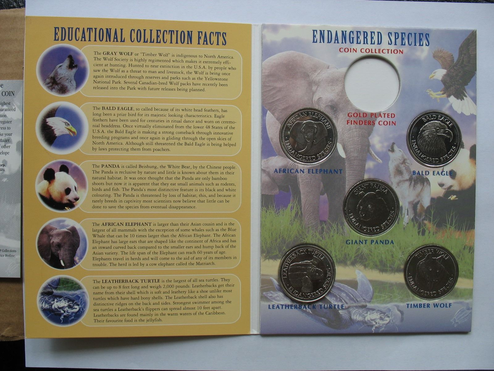 ENDANGERED SPECIES COIN COLLECTION plus 4 UNOPENED PACKS - May contain the special Gold Plated Coin