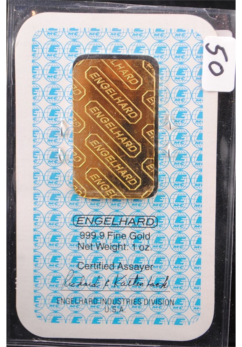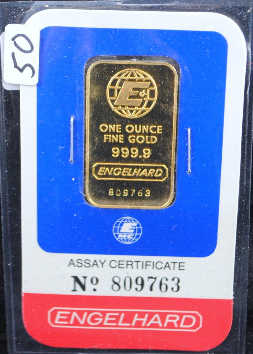 ENGELHARD ONE OUNCE 999.9 FINE GOLD BAR - ASSAY CERTIFICATE NO. 809763