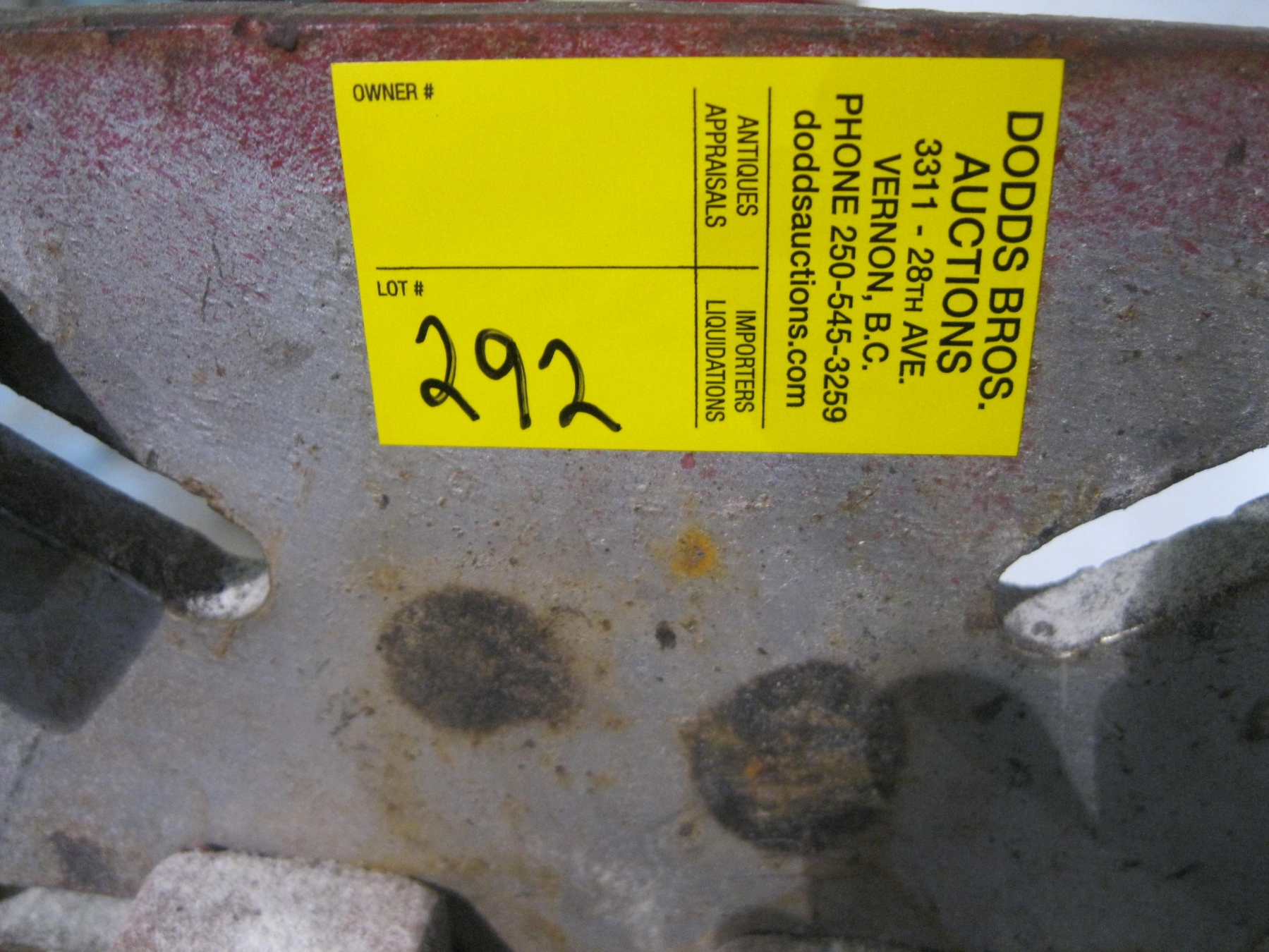 Attendance at the auction preview, or removal of purchased lots by purchaser/bidders and guests is done at their sole risk. Dodds Auction assumes no risk or liability, statutory, common law or otherwise whatsoever for the safety of those attending at the auction premises.