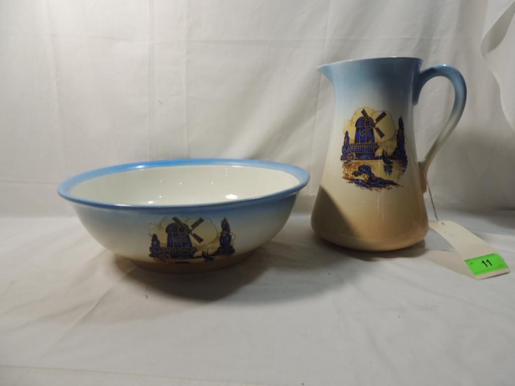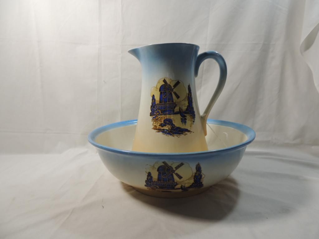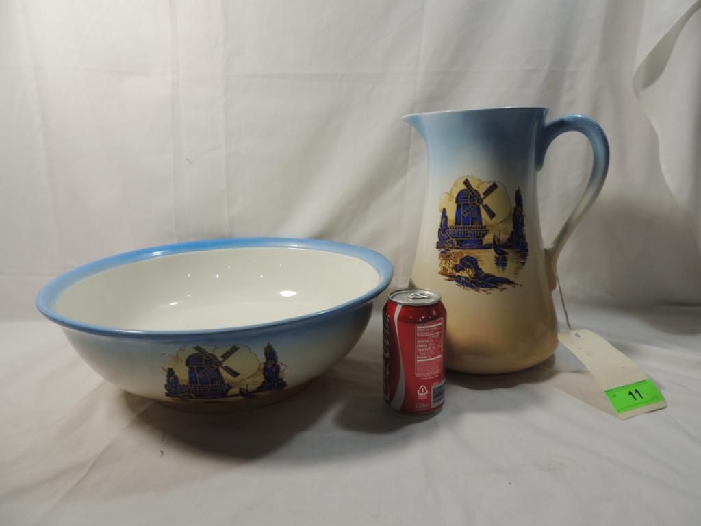 ENGLISH ANTIQUE WASH PITCHER AND WASH BOWL. AS SHOWN. SEE PHOTO.