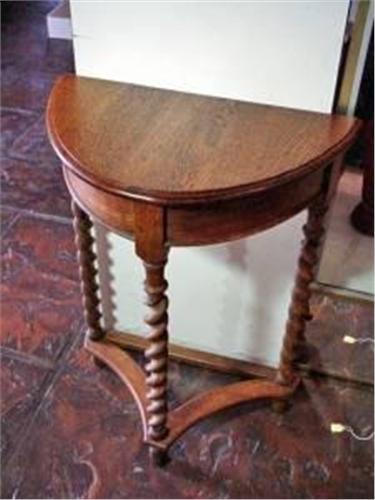 ENGLISH BARLEY TWIST THREE-LEGGED WALL TABLE. 27.5"X21.5"