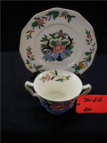 ENGLISH BOOTHS inWOODSTOCKin (1) 6 1/4in PLATE (W/ RIM CHIP), (1) DBL. HND. CUP EXCELLENT, 2 PCS