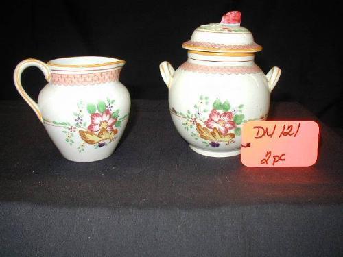 ENGLISH CALYX WARE BY ADAMS inCAROLYNNin HND. PTD. (1) COVERED SUGAR (COVER HAS SM FLEA BITES ON INTERIOR LID RIM) (1) MATCHING CREAMER EXCELLENT, 2 PCS