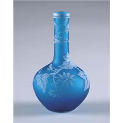 Lot 58 ENGLISH CAMEO VASE White floral decoration, cameo cut, on blue ground. SIZE: 7-1/4” t. CONDITION: Very good to excellent. 5-70485