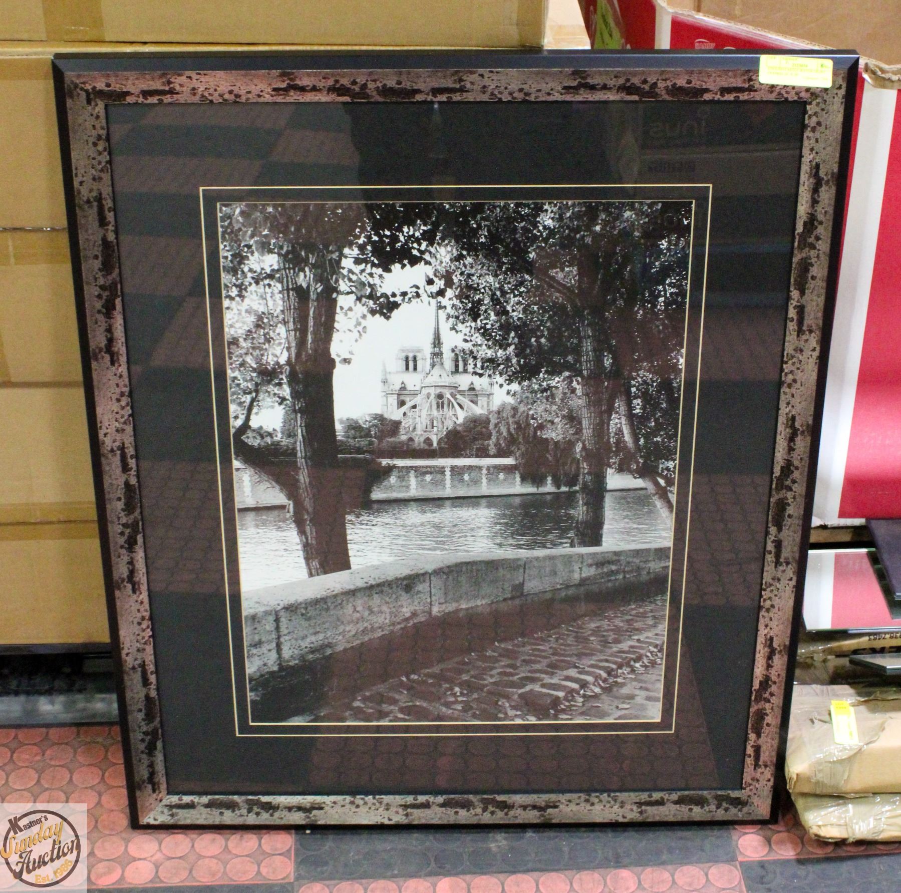 ENGLISH CASTLE WATER FRONT FRAMED 34" X 39"