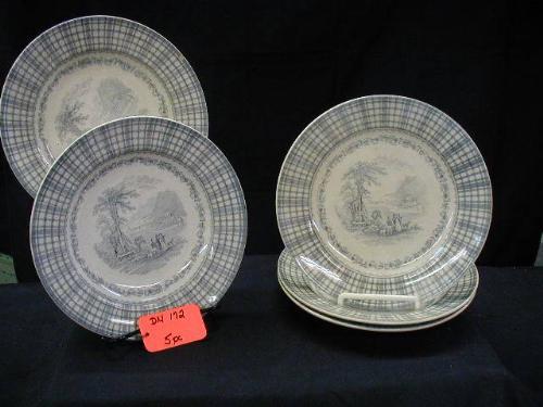 ENGLISH CAULDON DINNERWARE INCLUDES (1) 9 1/4in PLATE, (4) 9 1/4in SOUP BOWLS (1 W/CHIP & HAIRLINE), 5 PCS