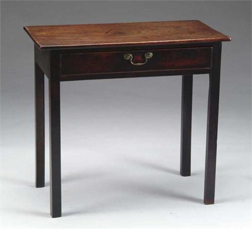 ENGLISH CHIPPENDALE ONE-DRAWER SERVING TABLE. Single board top has a long drawer fitted in the frieze. Raised on four square legs. SIZE: 27-3/4” h x 30” w x 16-1/2” d. CONDITION: Very good. 9-27980