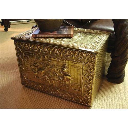 ESTATE ITEM FROM ENGLAND...USE TO HOLD FIREWOOD...EMBOSSED THROUGHOUT, GREAT VICTORIAN STYLE PIECE FOR ANY HOME! DONT MISS OUT ON THIS GREAT PIECE. PLEASE EMAIL US FOR SHIPPING DETAILS. THE ITEM WILL LEAVE OUR WAREHOUSE FOR SHIPMENT IN 2-4 WEEKS...THANK YOU!