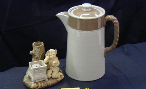 ENGLISH FIRE STARTER MATCH STRIKE,(AS IS W/DAMAGE), ENGLISH DODSON HANLEY PITCHER JASPERWARE (W/FLICK ON LID)